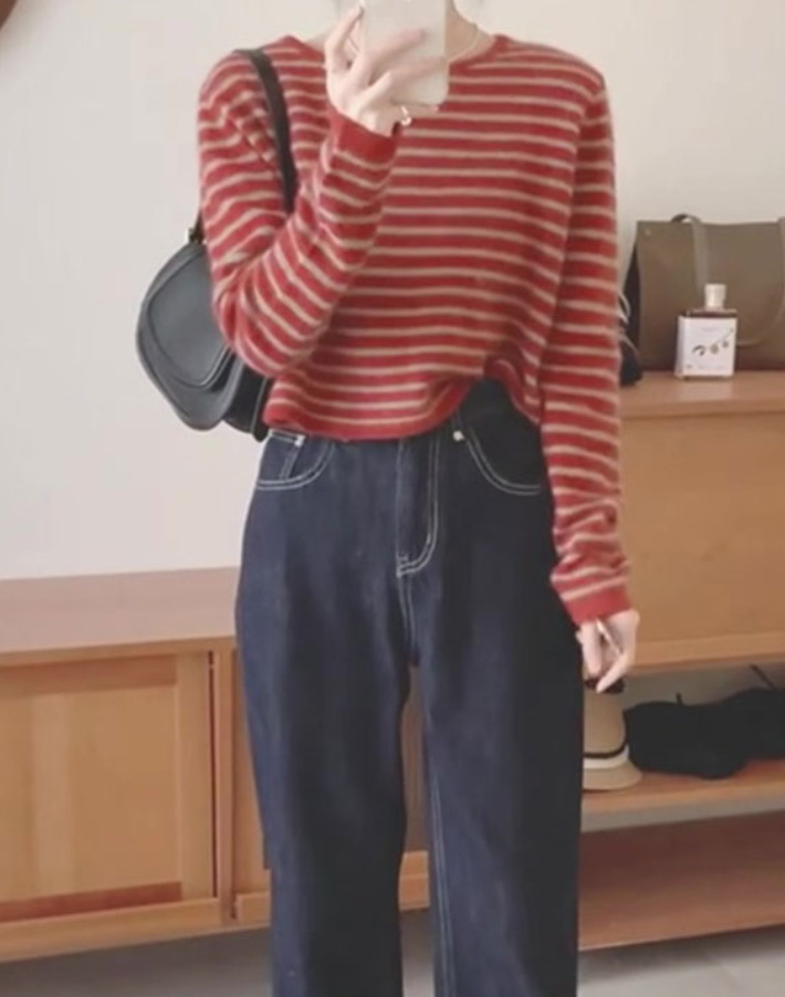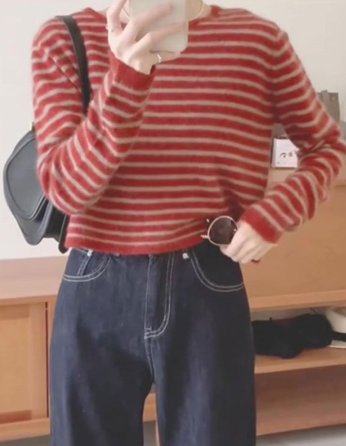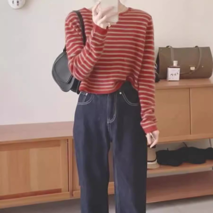 2025 초가을 스웨터 한국 스타일 의상 독특하고 멋진 레드 스트라이프 니트 여성 봄 가을 스타일스토어 가기
