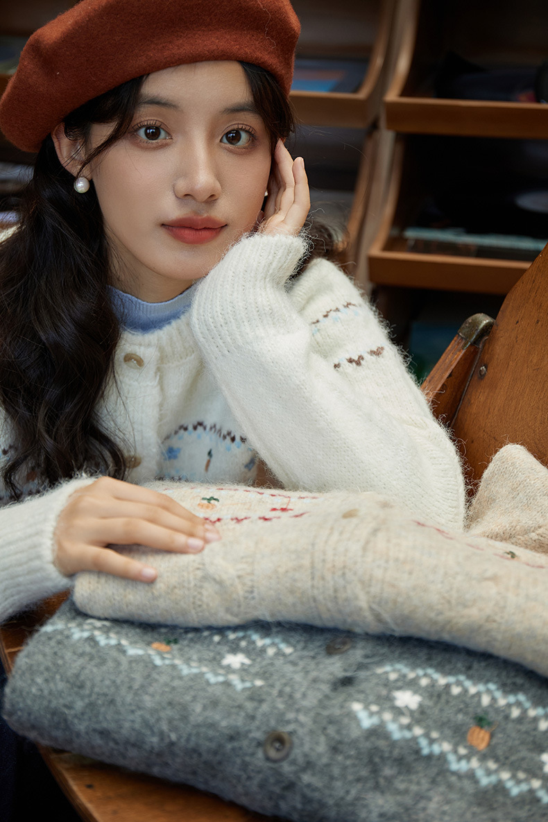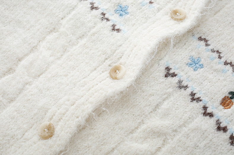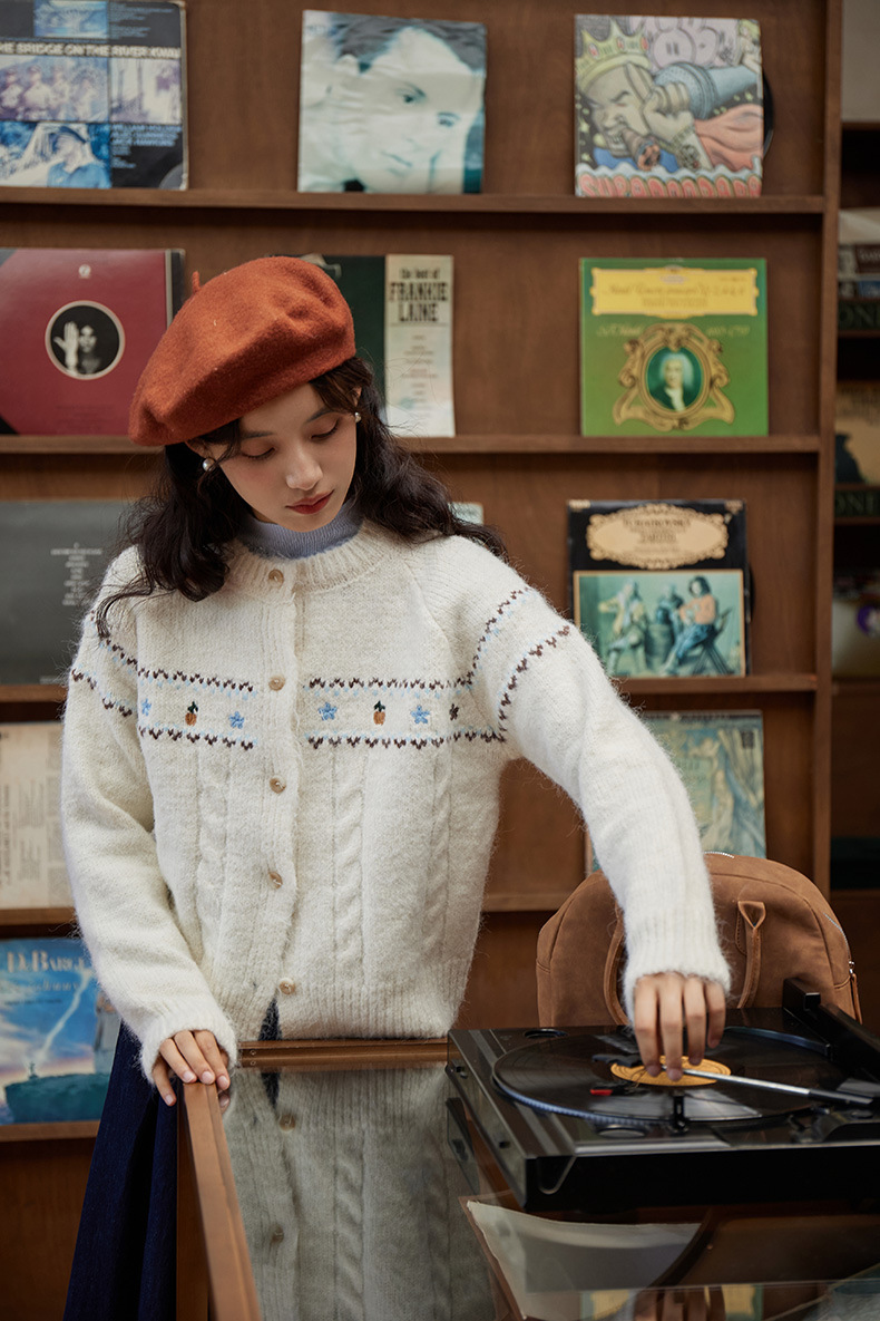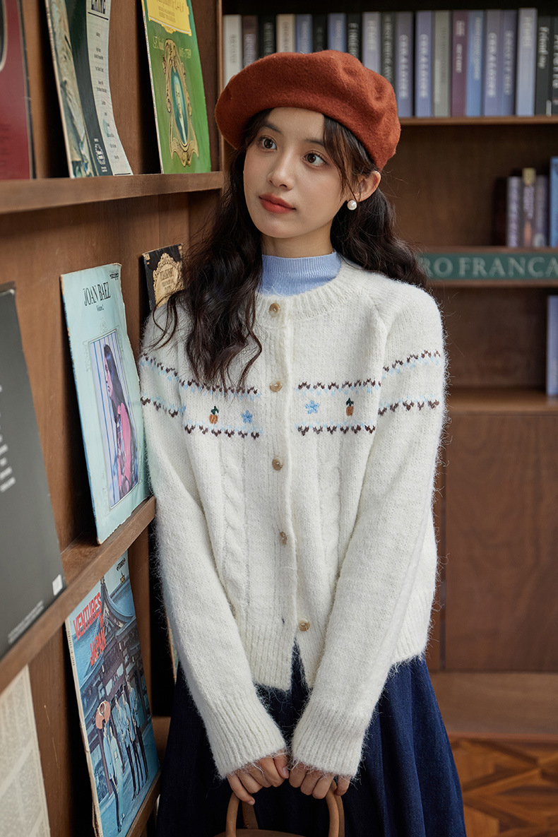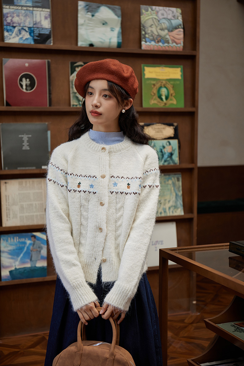 2024 가을과 겨울 새로운 예술 복고풍 꽃 자수 트위스트 스트립 크루 넥 스웨터 코트 여성용 니트 카디건 스웨터스토어 가기