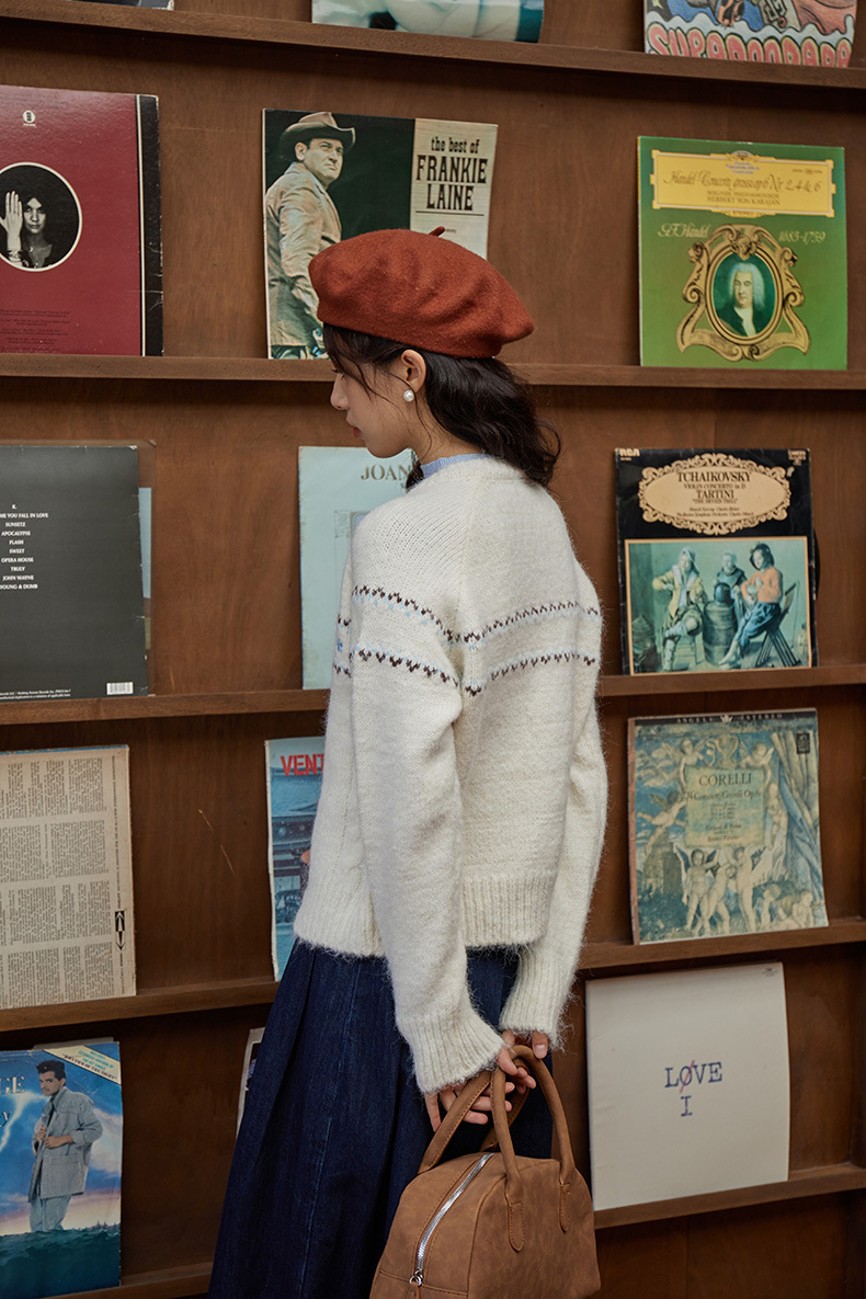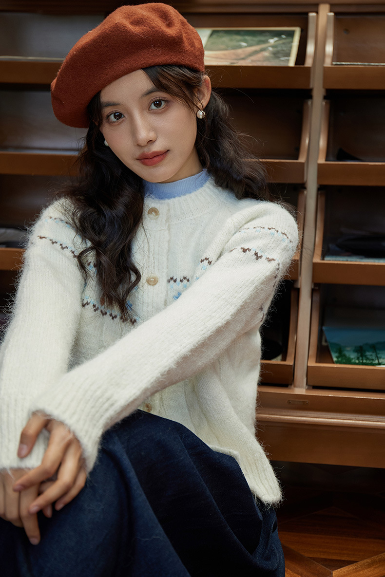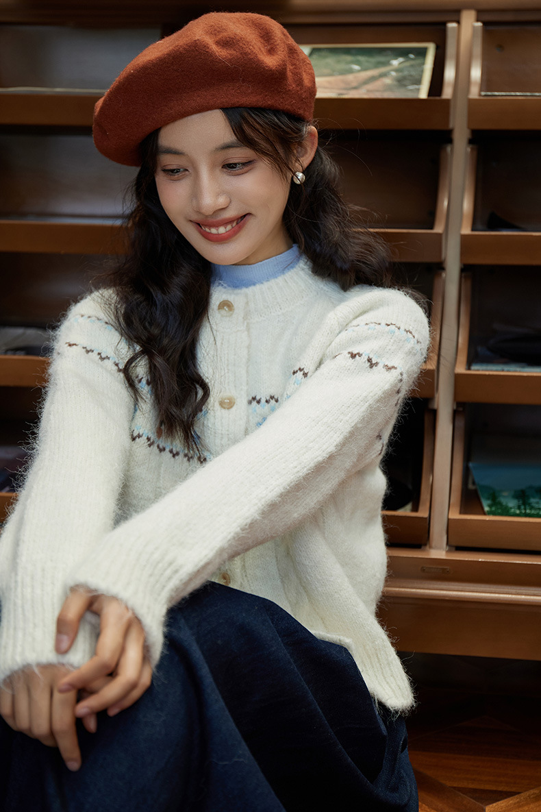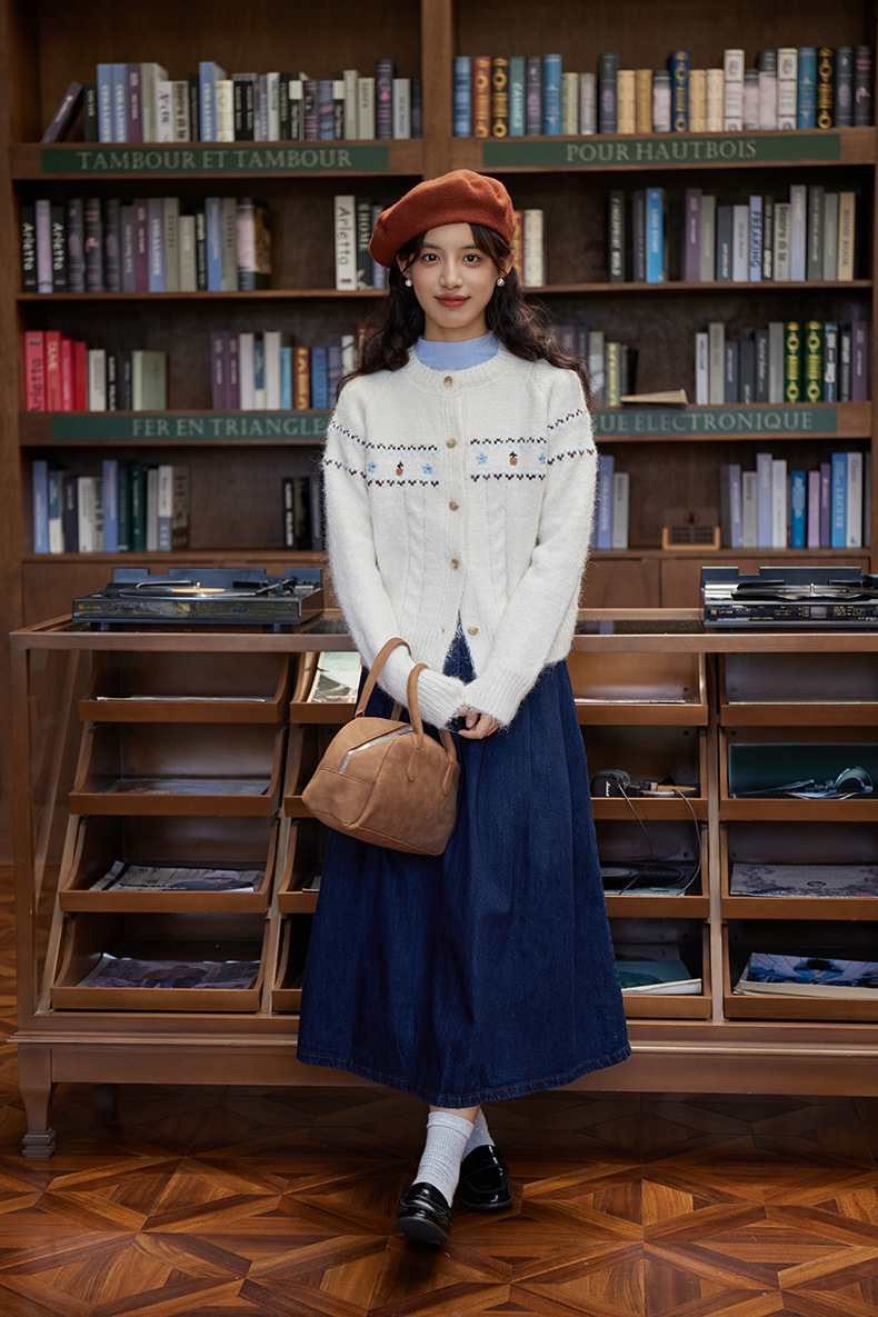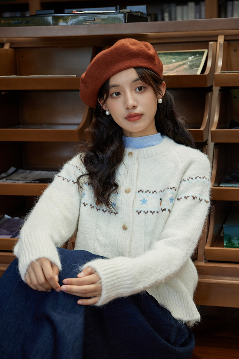 2024 가을과 겨울 새로운 예술 복고풍 꽃 자수 트위스트 스트립 크루 넥 스웨터 코트 여성용 니트 카디건 스웨터스토어 가기