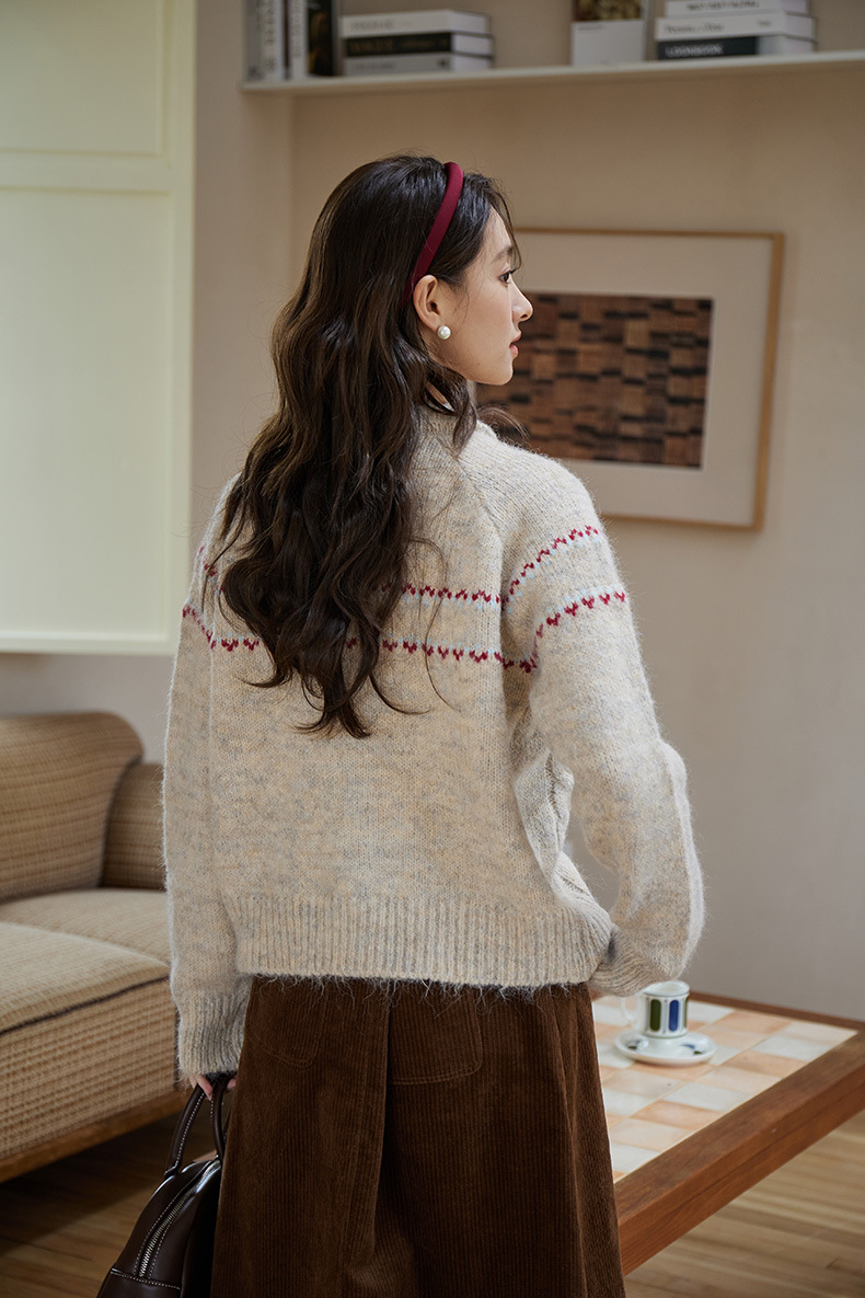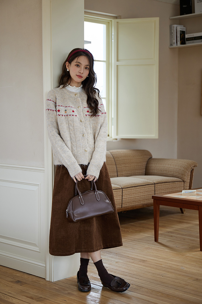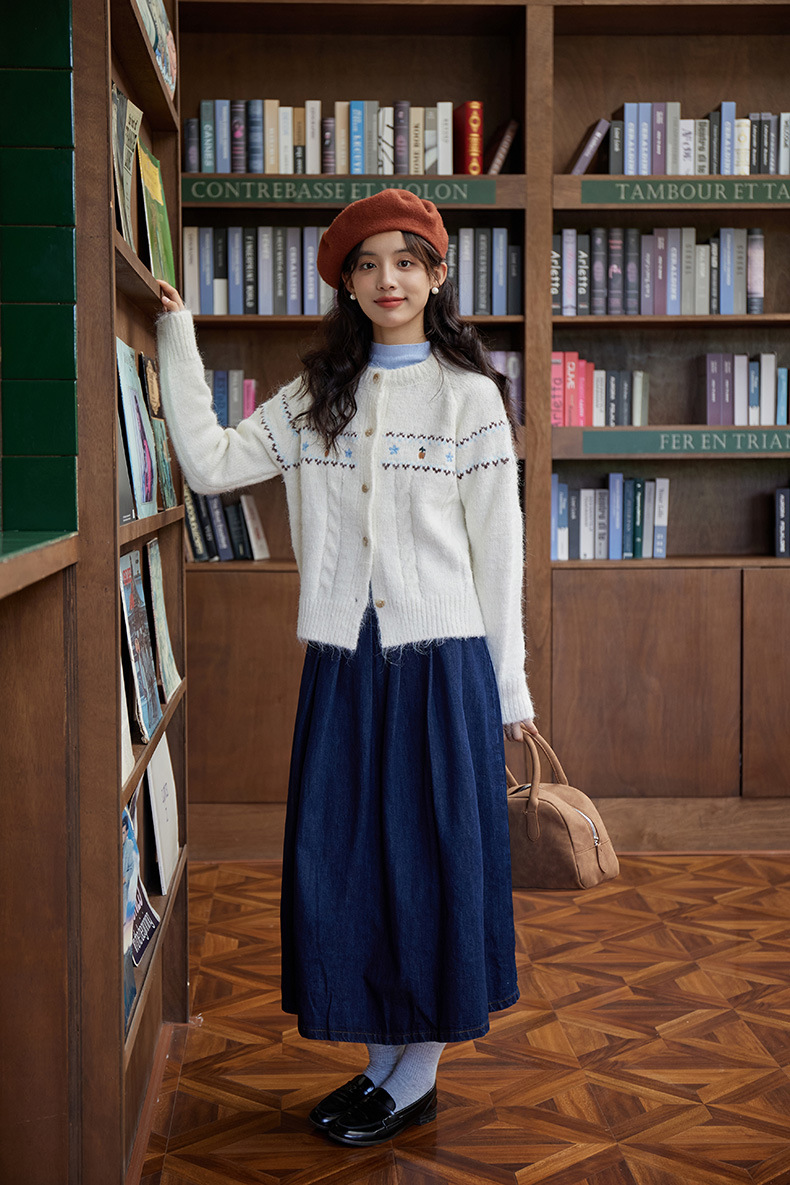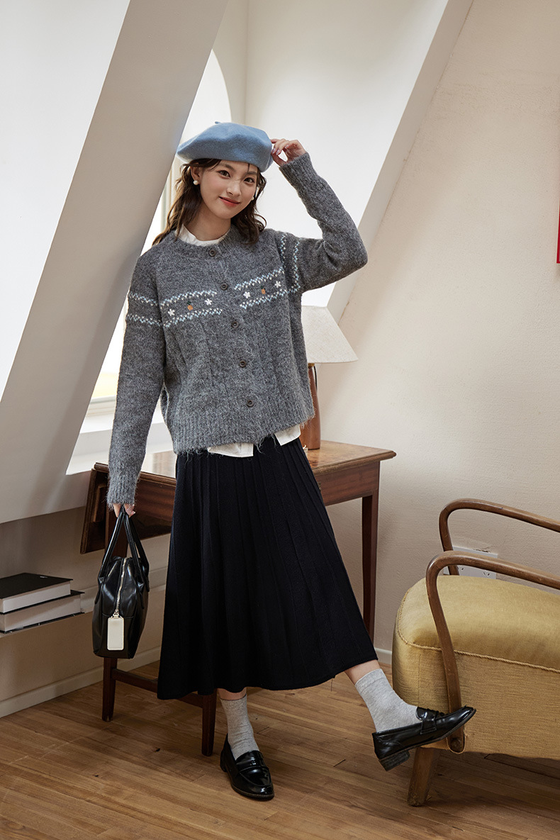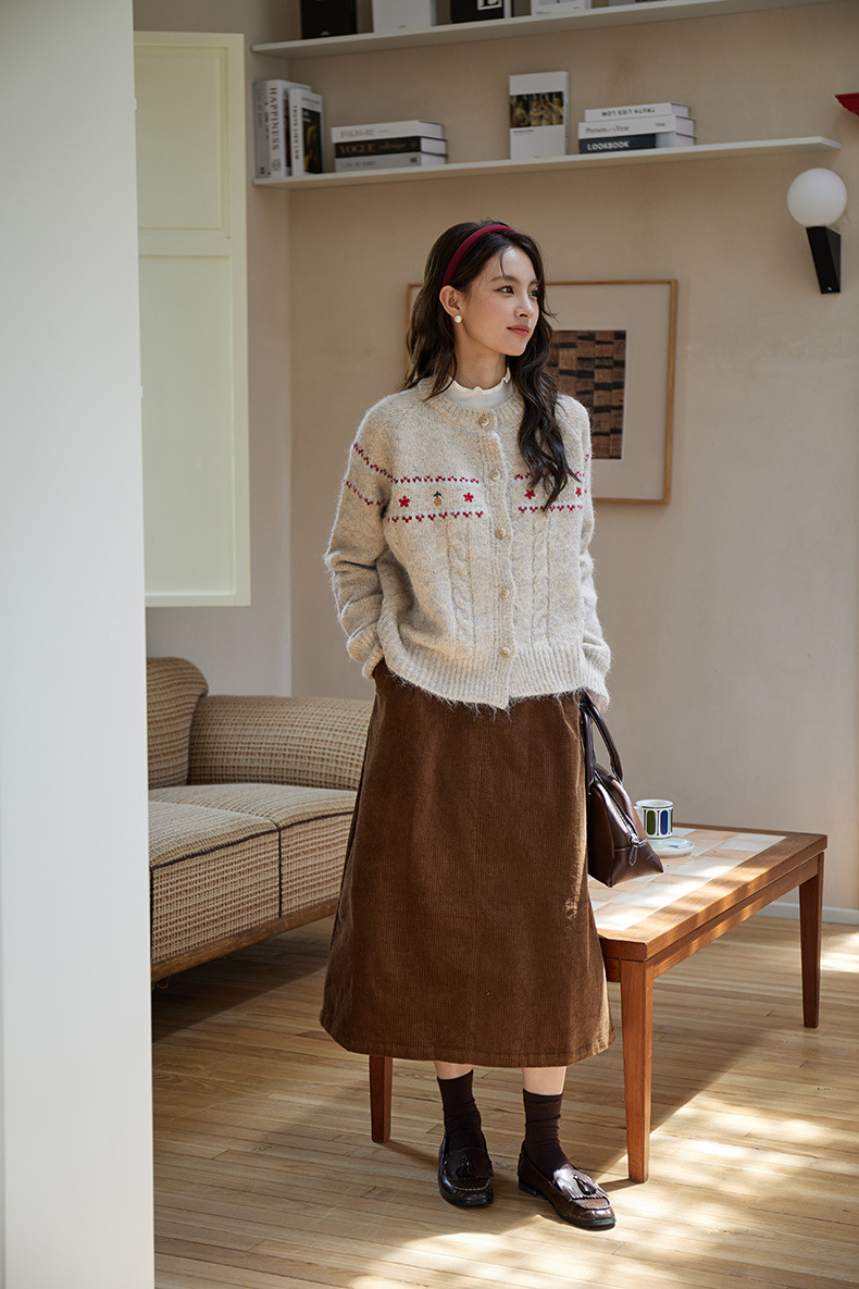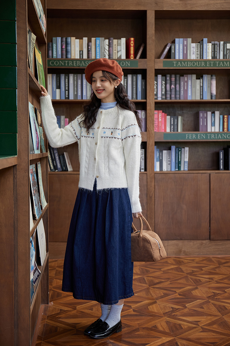 2024 가을과 겨울 새로운 예술 복고풍 꽃 자수 트위스트 스트립 크루 넥 스웨터 코트 여성용 니트 카디건 스웨터