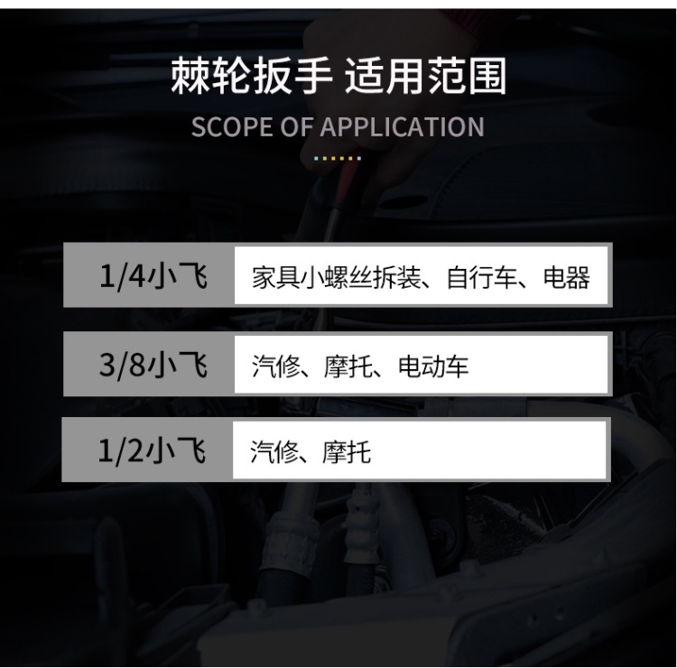 • 3/8 미디엄 플라이 곡선 핸들 렌치 72개 톱니