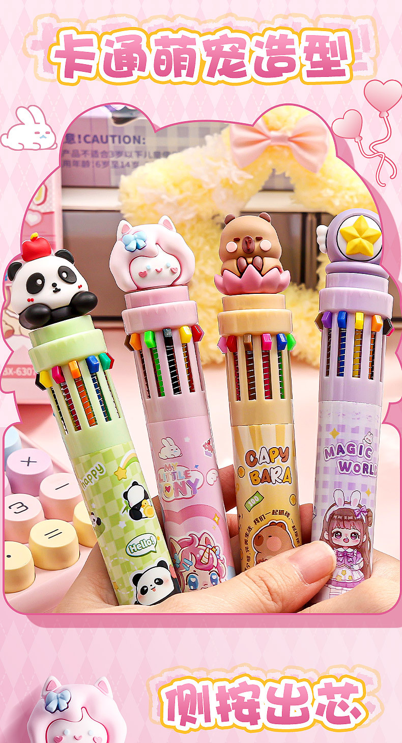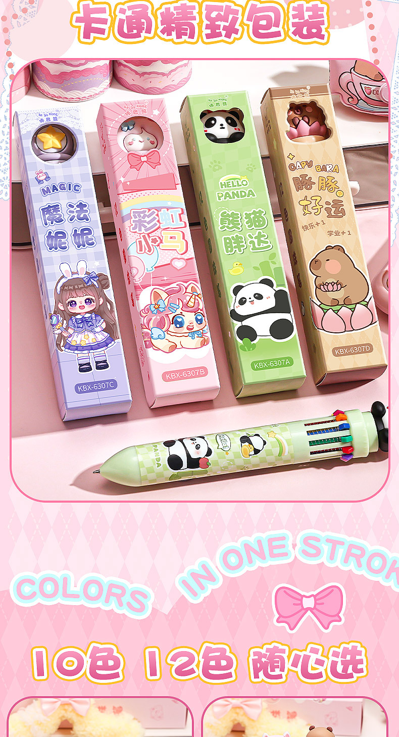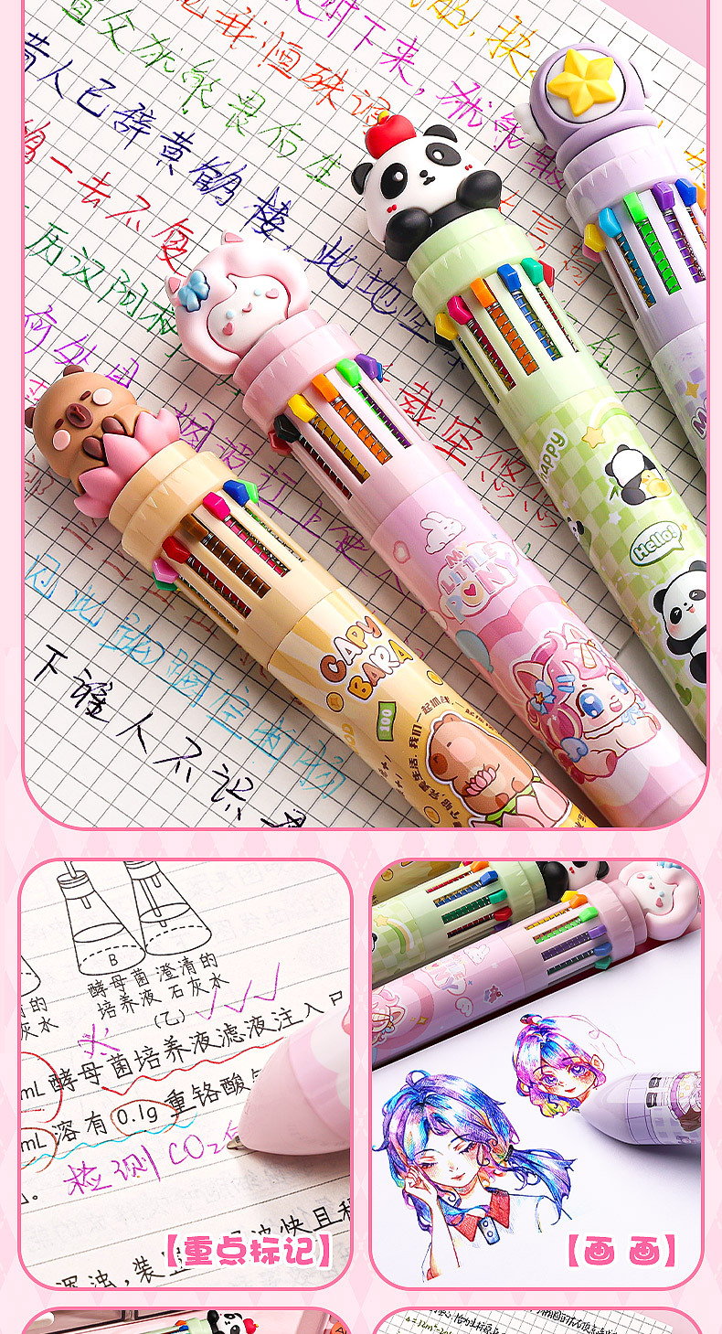 10색 볼펜, 멀티 컬러 귀여운 만화 패턴, 멀티 컬러 볼펜, 프레스 컬러 다기능 중유성 펜 12색