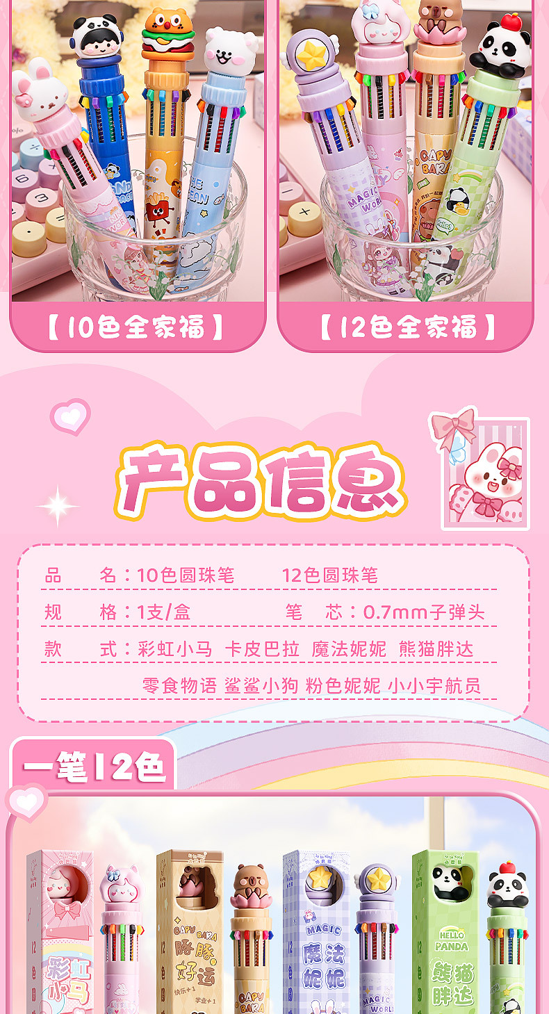 10색 볼펜, 멀티 컬러 귀여운 만화 패턴, 멀티 컬러 볼펜, 프레스 컬러 다기능 중유성 펜 12색스토어 가기