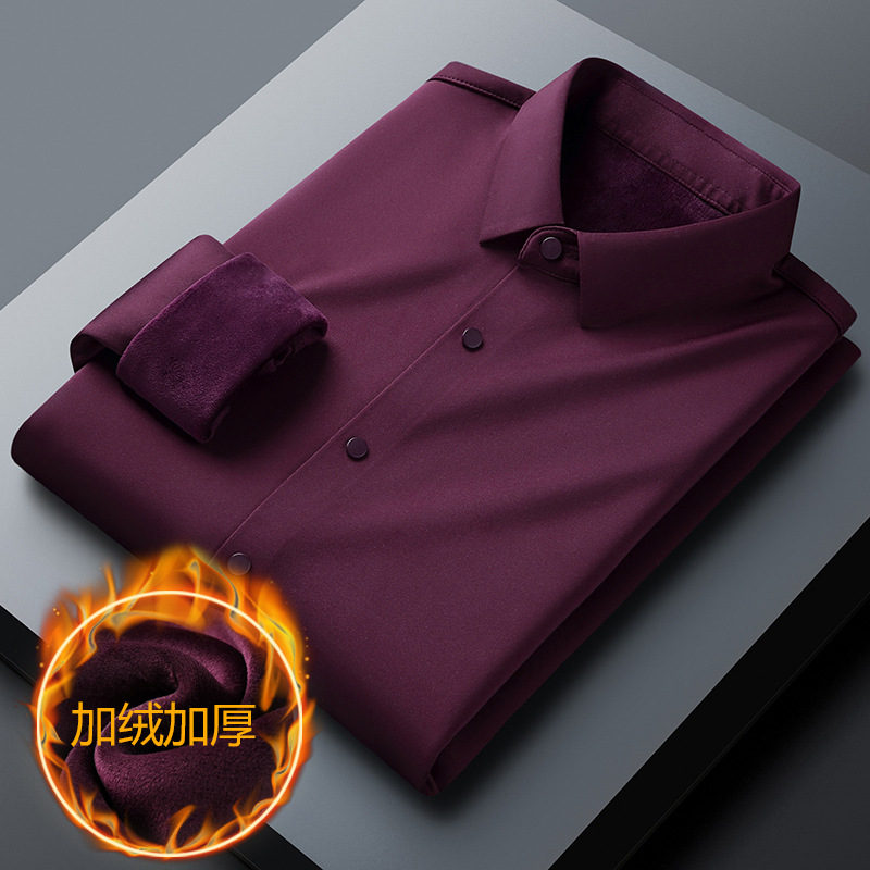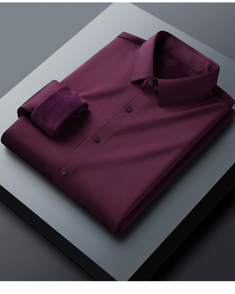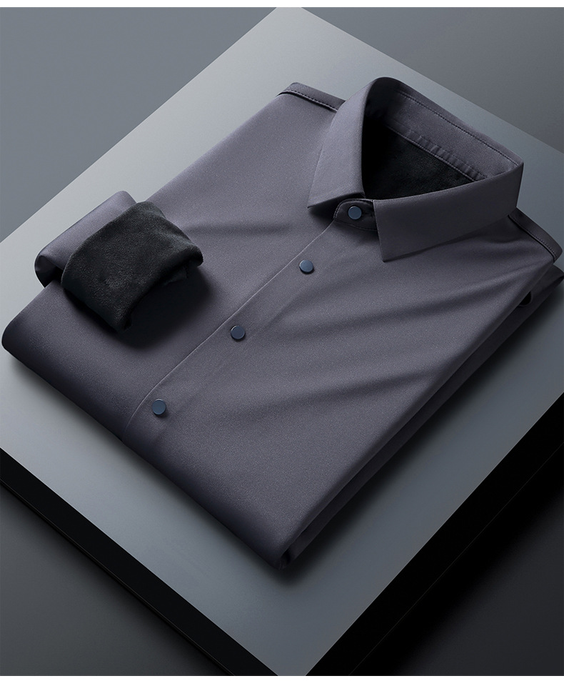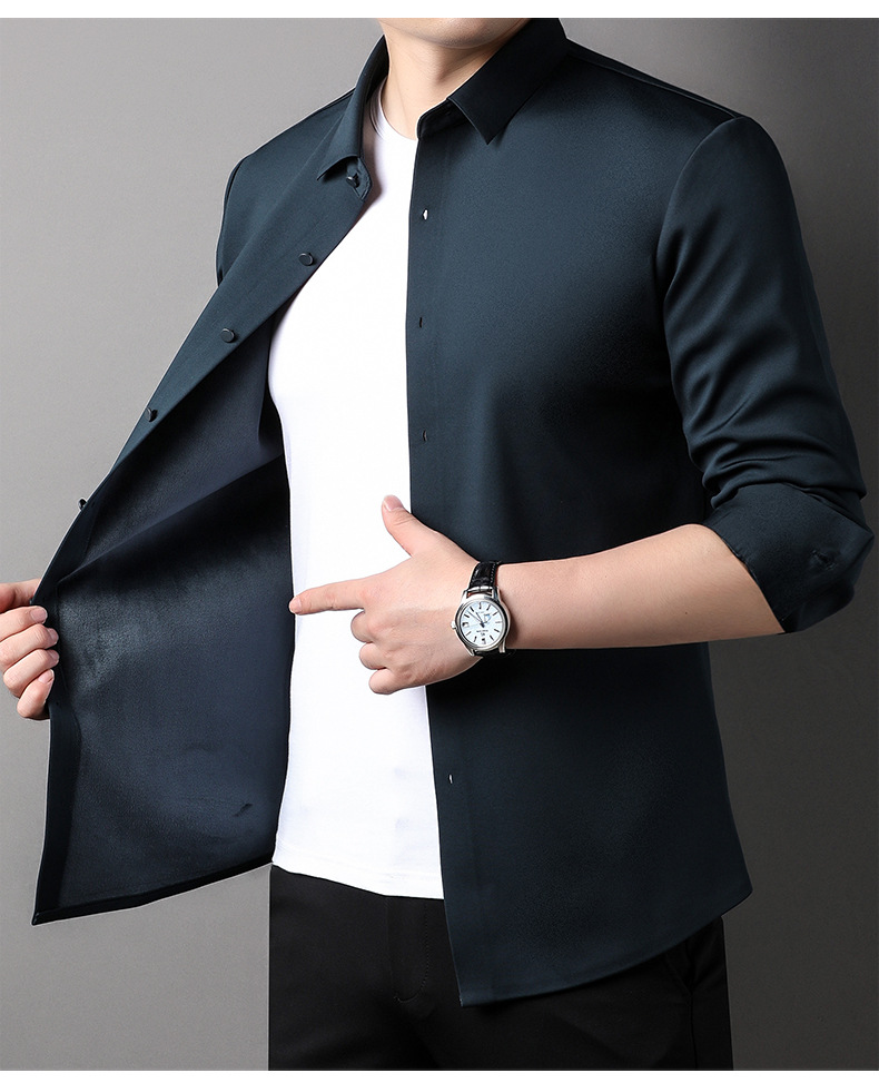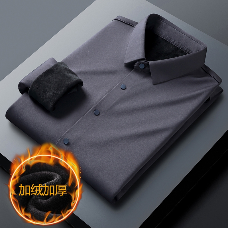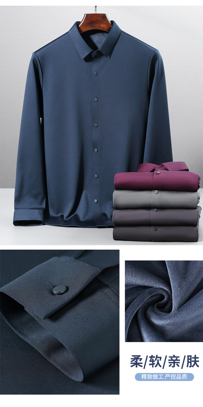 【고탄력 무다림질】남성용 플리스 안감 긴팔 셔츠 2025 가을 무봉제 전문 작업복 출퇴근 비즈니스 셔츠