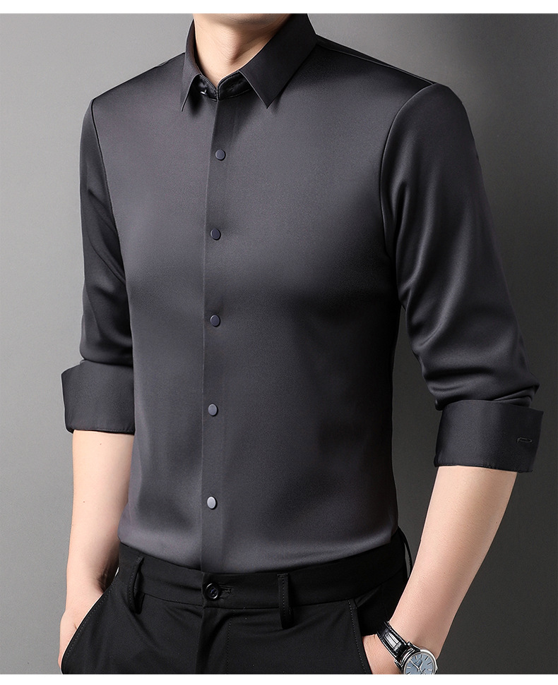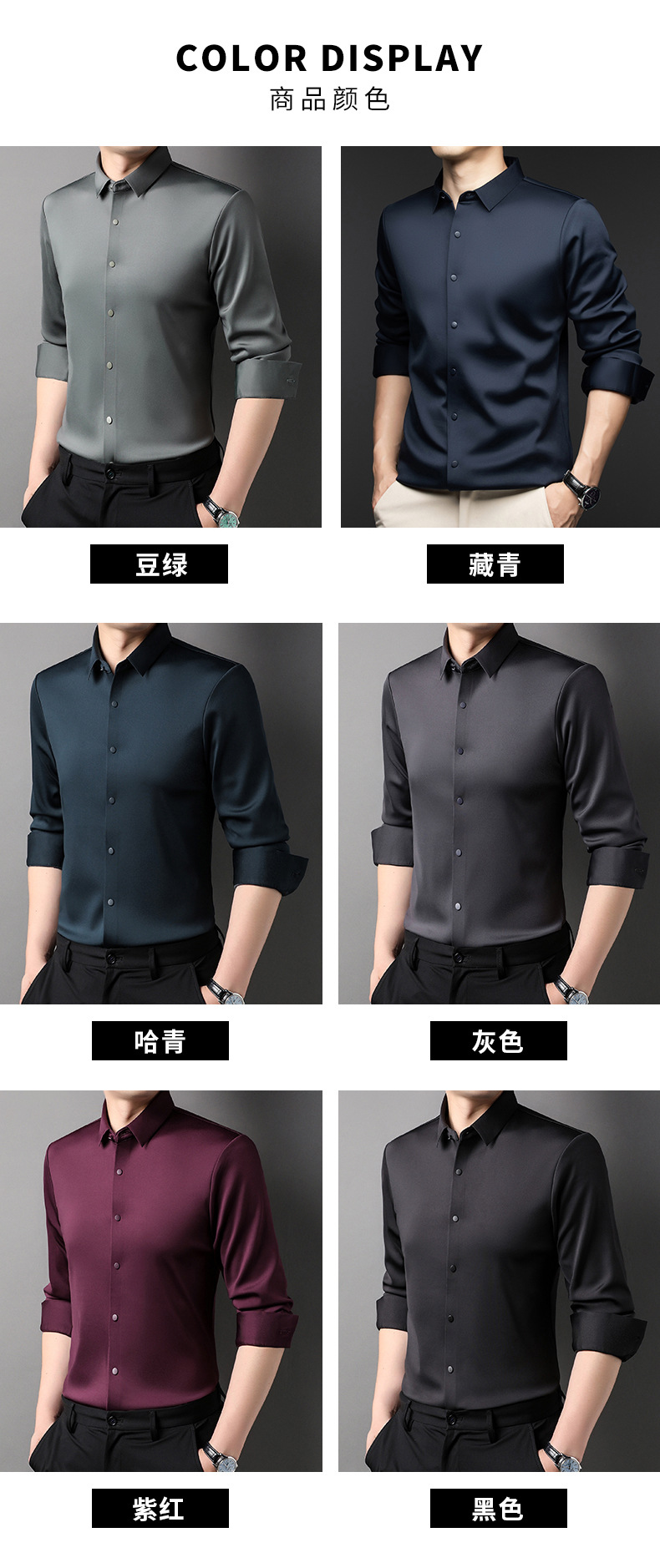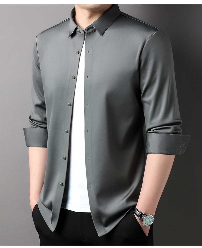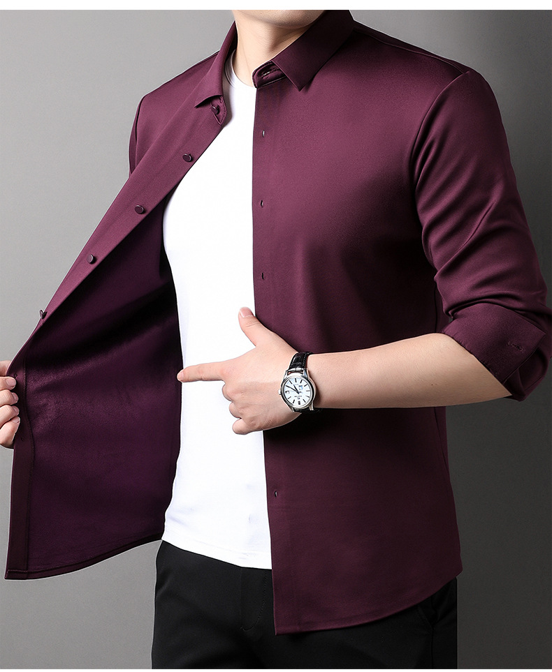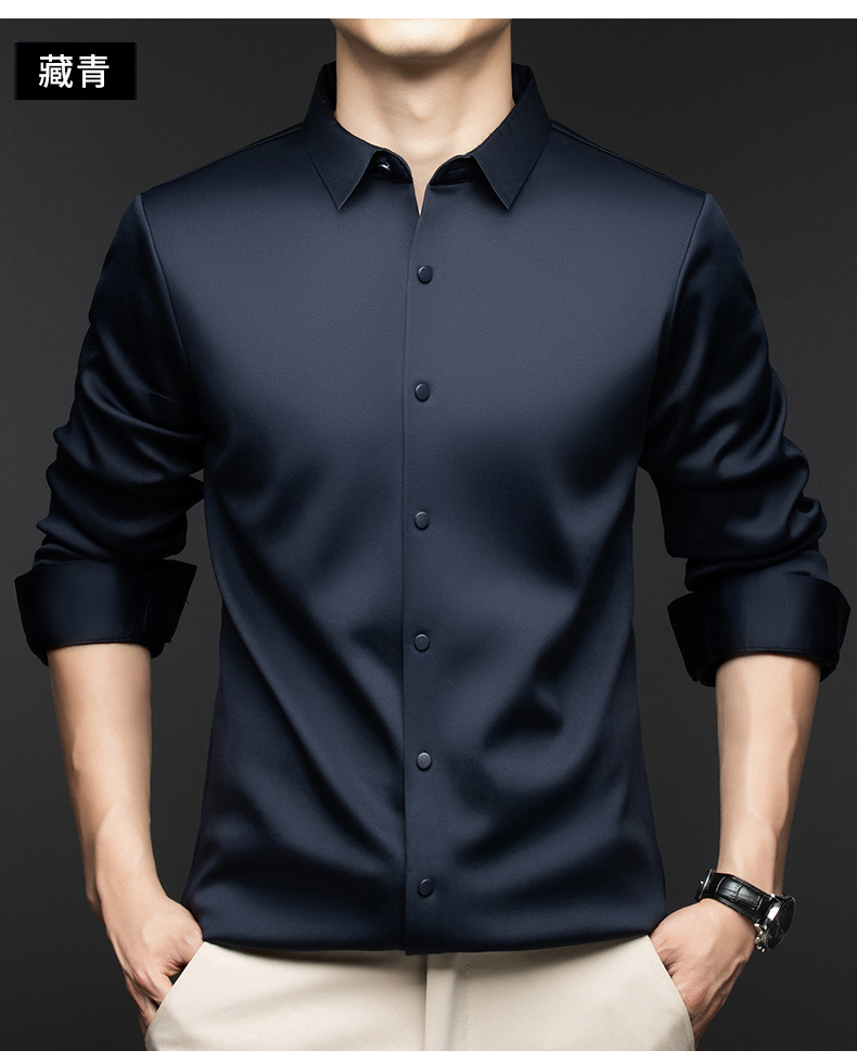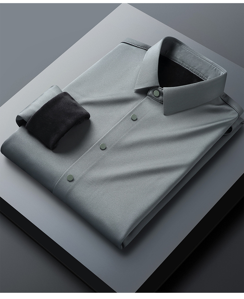 【고탄력 무다림질】남성용 플리스 안감 긴팔 셔츠 2025 가을 무봉제 전문 작업복 출퇴근 비즈니스 셔츠