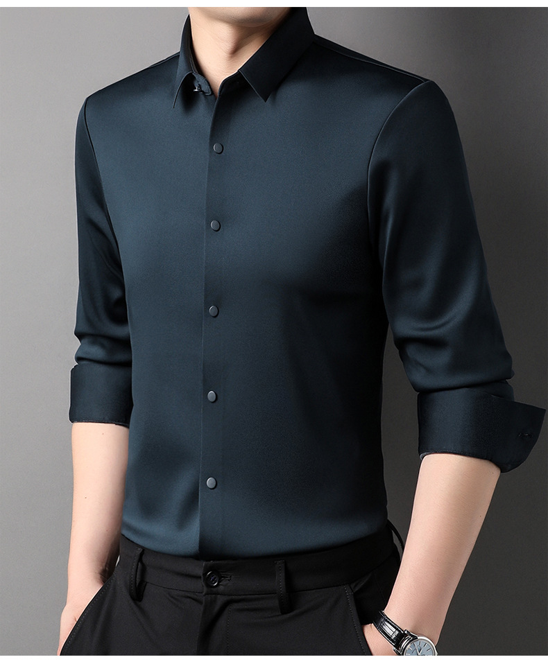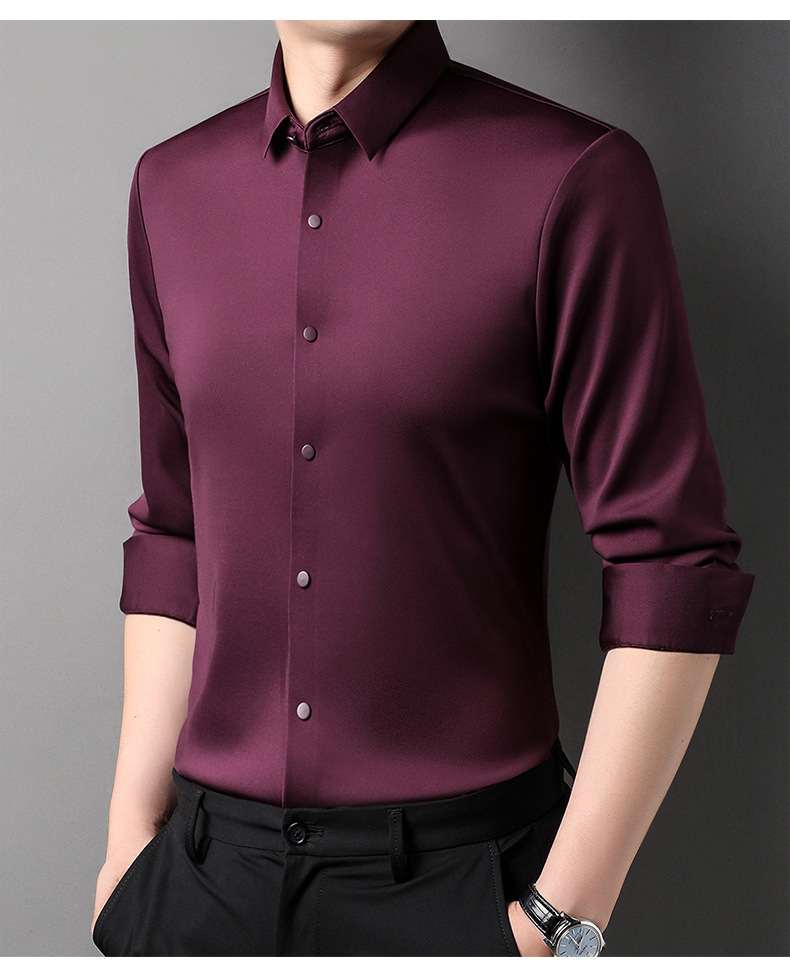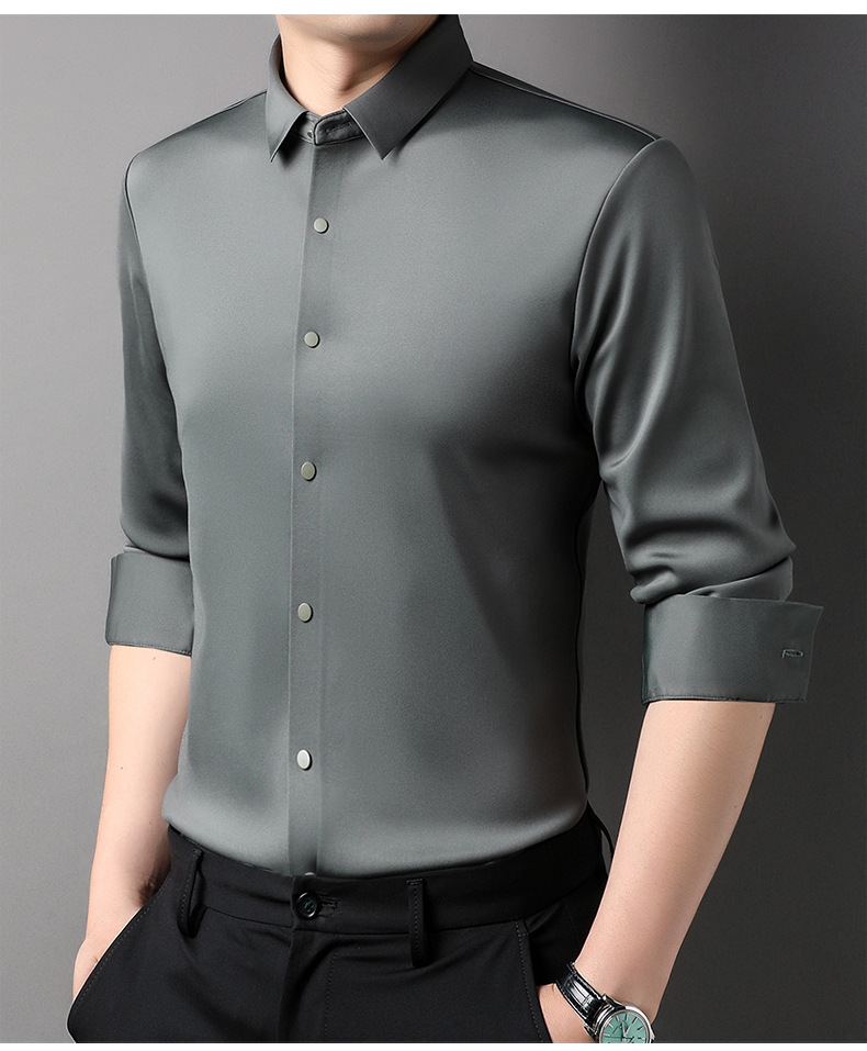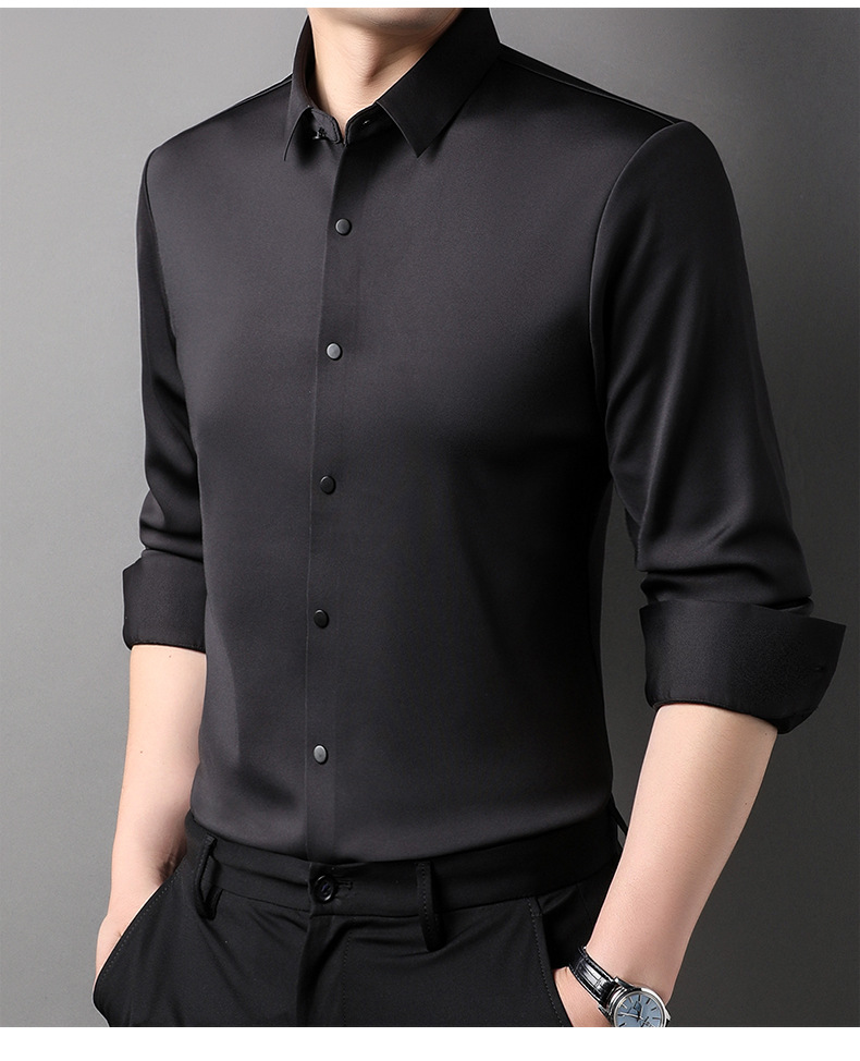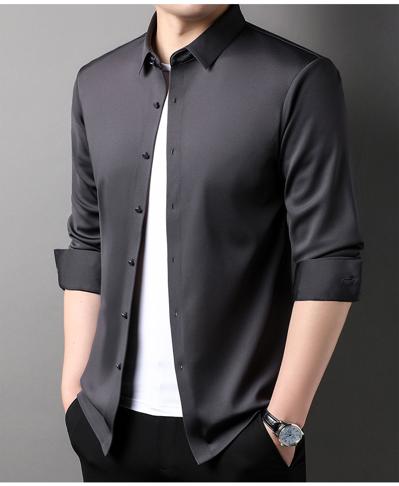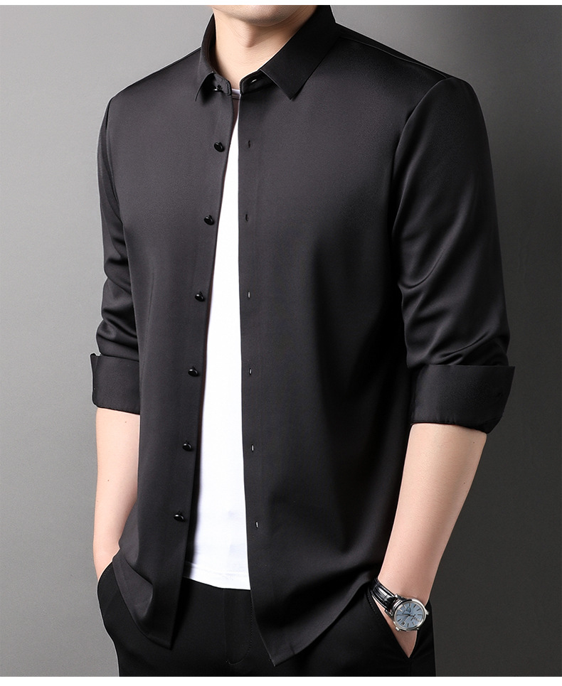 【고탄력 무다림질】남성용 플리스 안감 긴팔 셔츠 2025 가을 무봉제 전문 작업복 출퇴근 비즈니스 셔츠