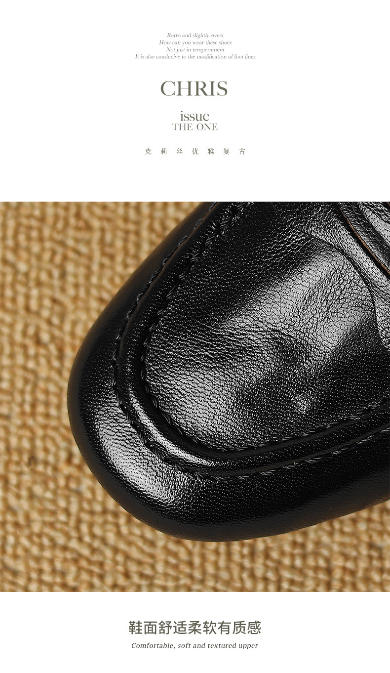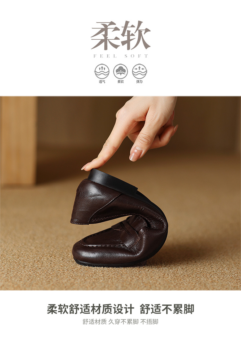 가을 2024 새로운 라운드 발가락 플랫 슈즈 여성용 스마일리 슈즈 레트로 다크 브라운 양가죽 싱글 슈즈 여성 신발 도매