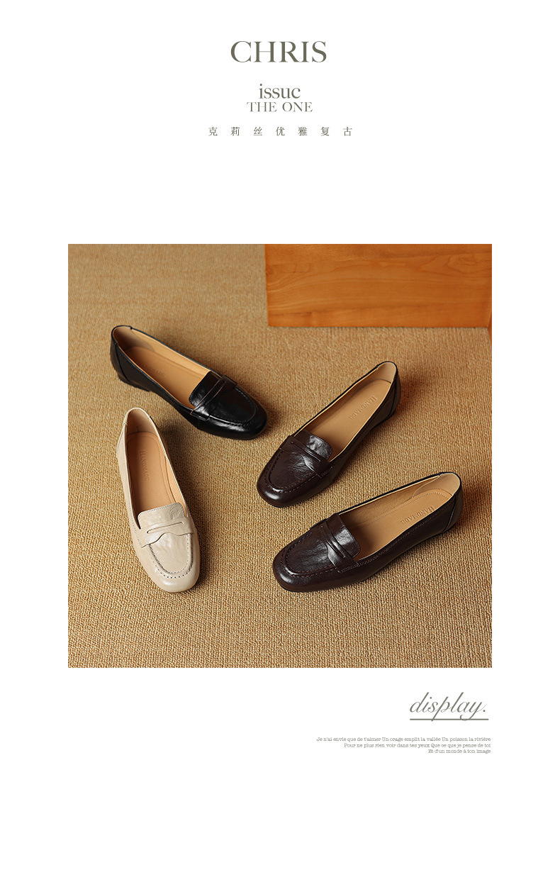 가을 2024 새로운 라운드 발가락 플랫 슈즈 여성용 스마일리 슈즈 레트로 다크 브라운 양가죽 싱글 슈즈 여성 신발 도매스토어 가기