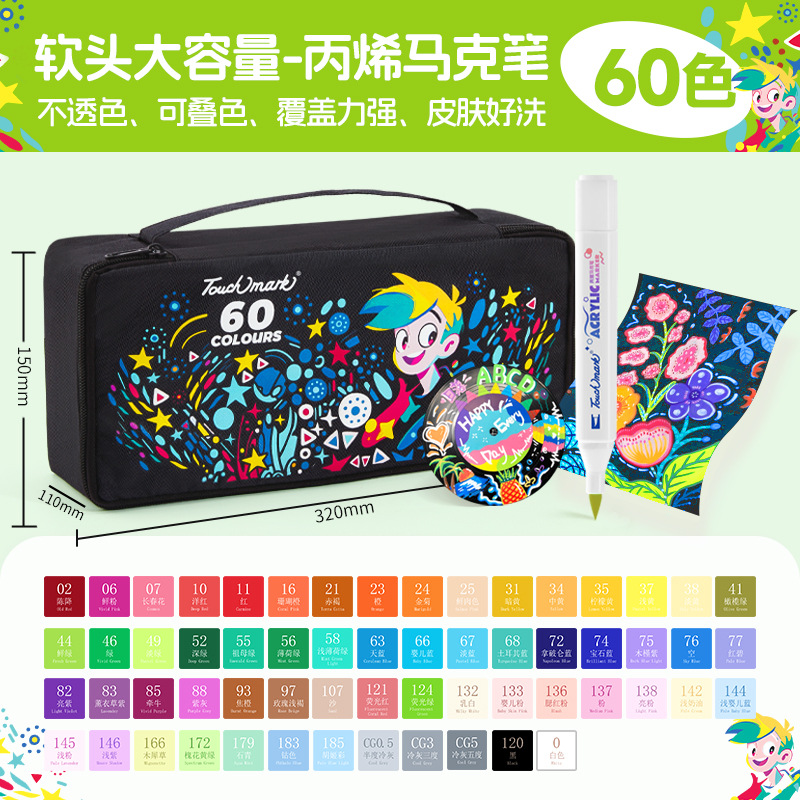 소프트 헤드 아크릴 마크 펜 60 컬러 핸드백 아트 투과성 스택 컬러 터치 마크 소프트 헤드 마크 펜