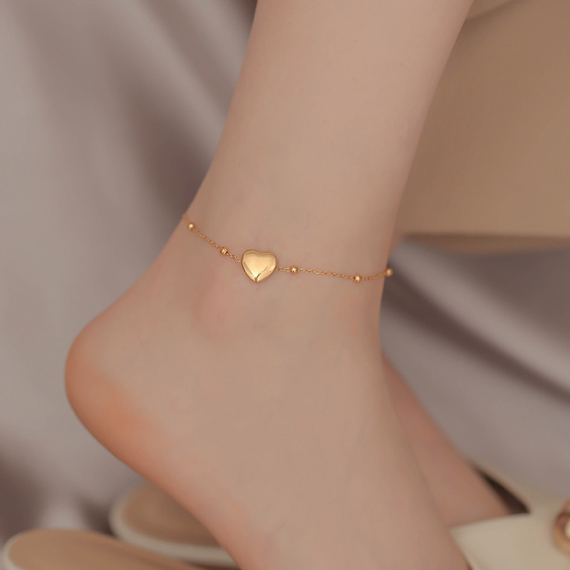 패션 티타늄 스틸 라운드 구슬 사랑 발목 여성 유럽과 미국의 기질 섹시한 성격 심장 모양의 모든 경기 간단한 보석 팔찌스토어 가기