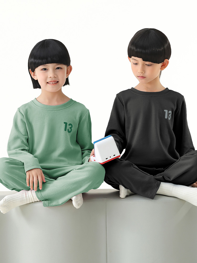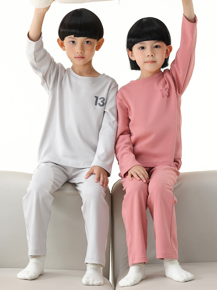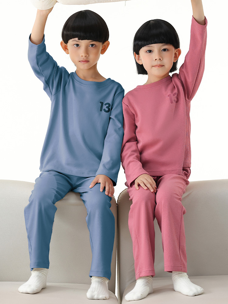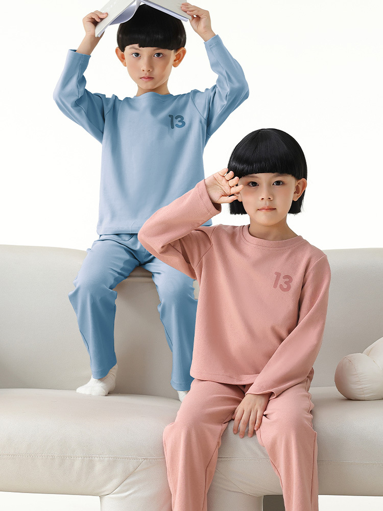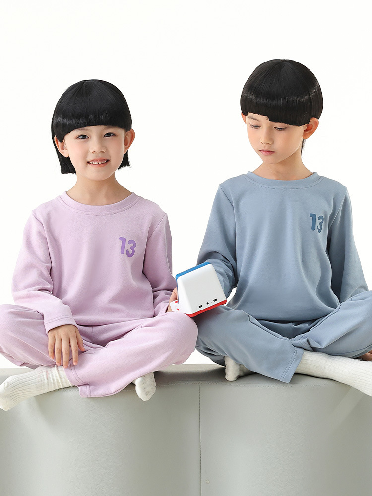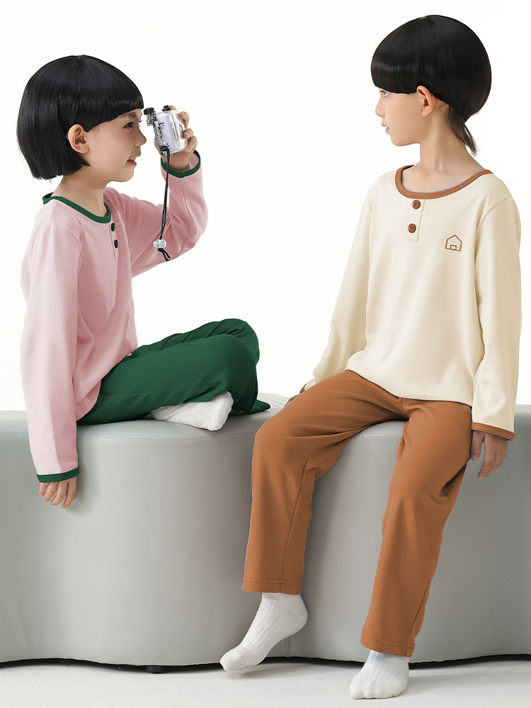 소년과 소녀를위한 코튼 잠옷 봄과 가을 긴팔 바지 간단한 캐주얼 어린이 속옷 홈 옷 투피스 세트