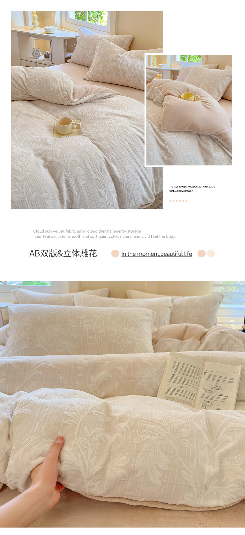 클래스 두꺼운 우유 벨벳 4 피스 세트 겨울 따뜻한 내한성 조각 3 피스 세트 정전기 방지 침대 시트 퀼트 커버 침구