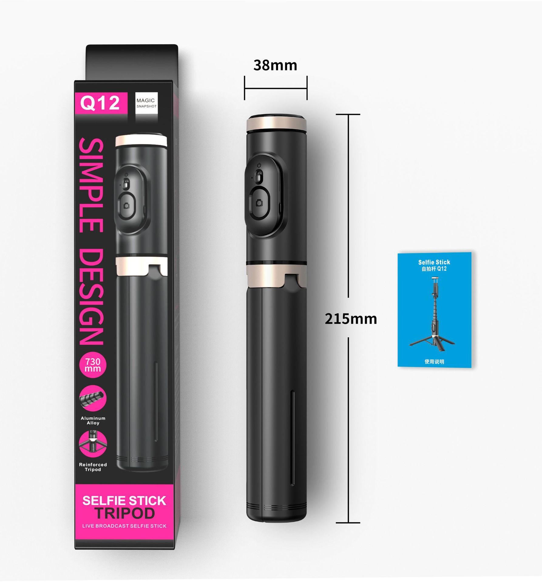 • 【Q12-블랙- 73cm 】삼각대 + 블루투스 리모컨