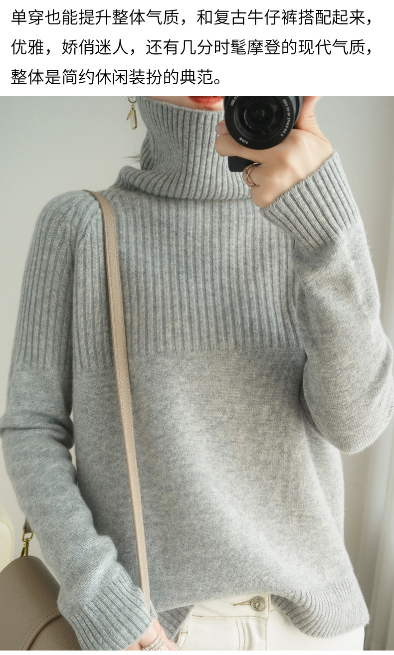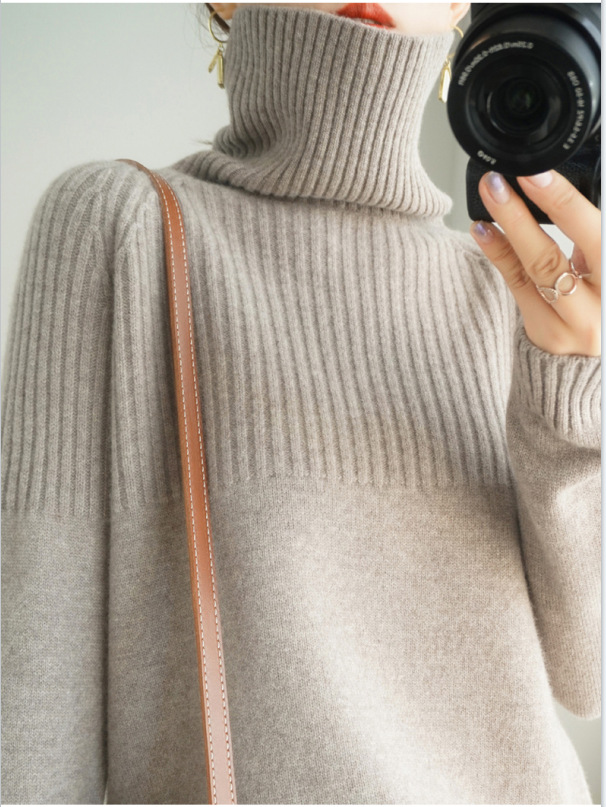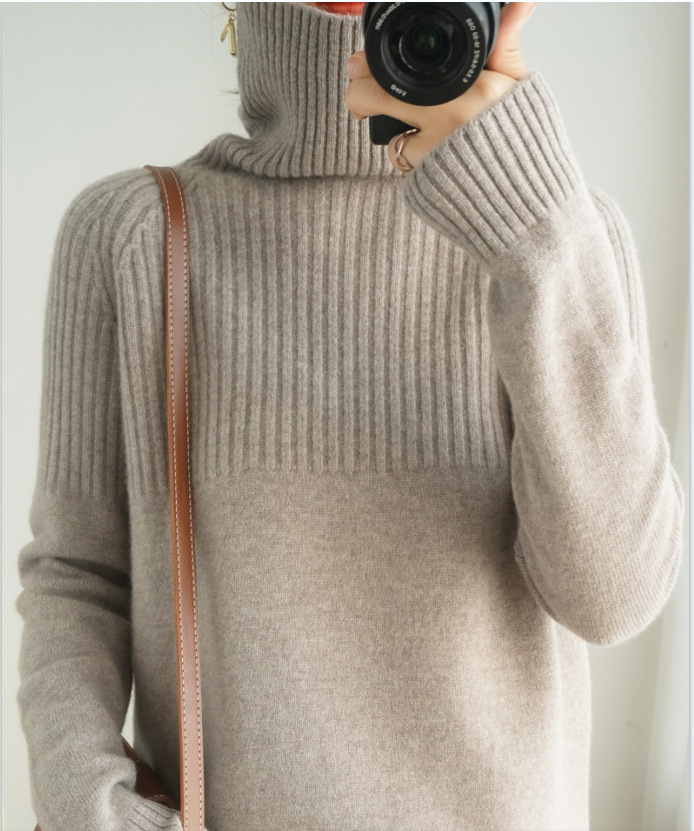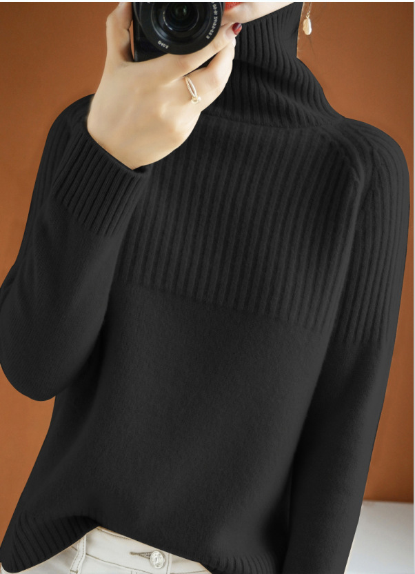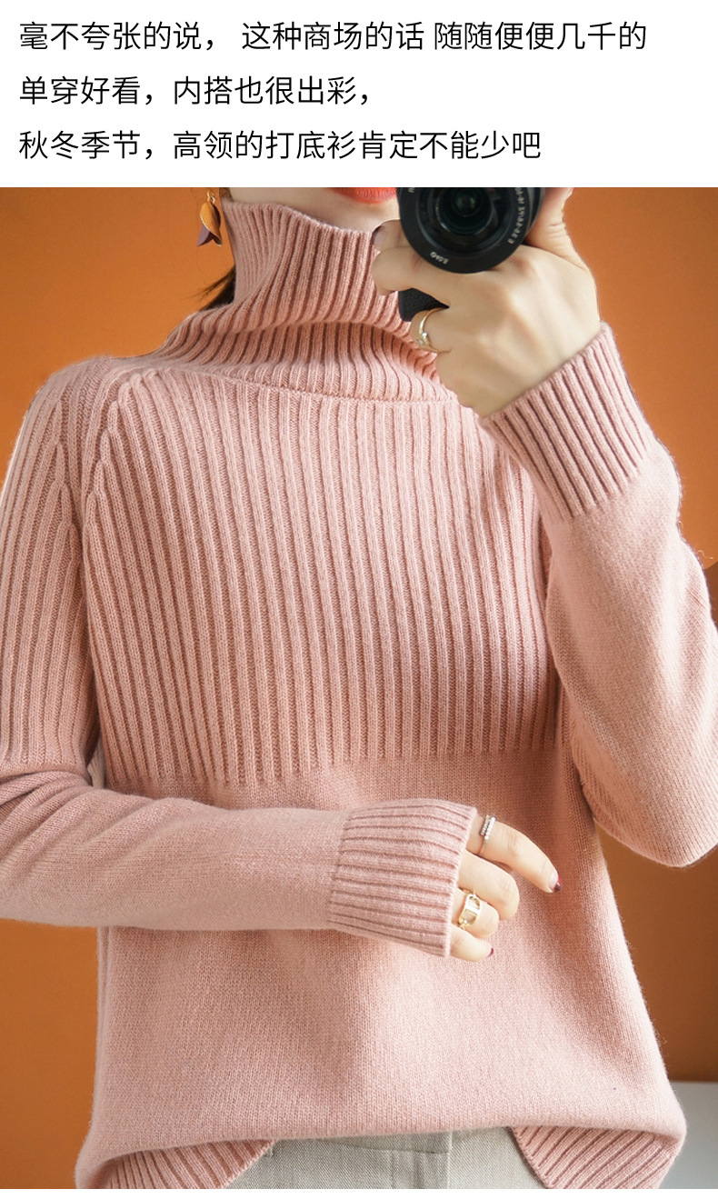 가을과 겨울 느슨한 게으른 스타일 두꺼운 터틀넥 스웨터 여성의 풀오버 긴 소매 솔리드 컬러 파일 칼라 니트베이스 셔츠스토어 가기