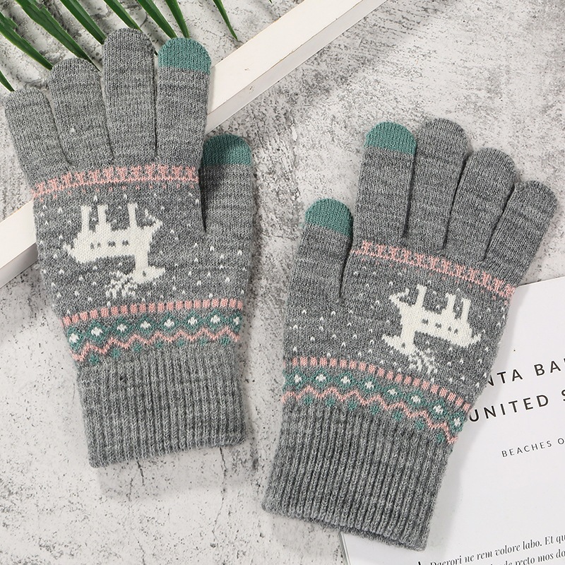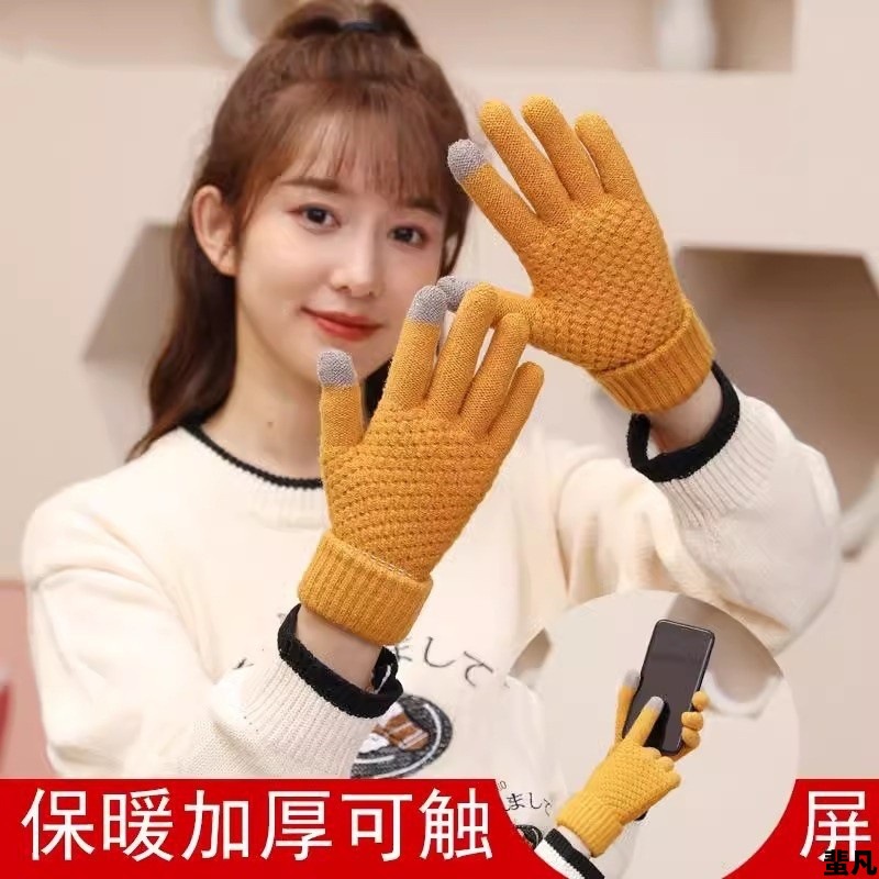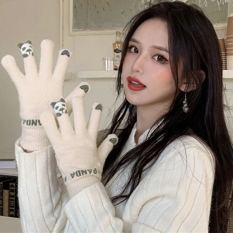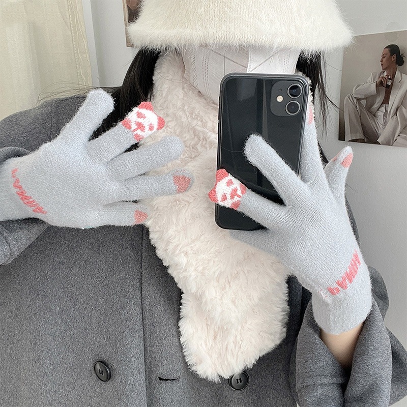 2024 가을/겨울 따뜻한 장갑 냉장 유니섹스 더블 레이어 기모 학생 귀여운 터치 스크린 두꺼운 니트 라이딩