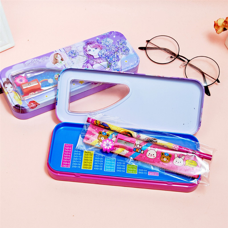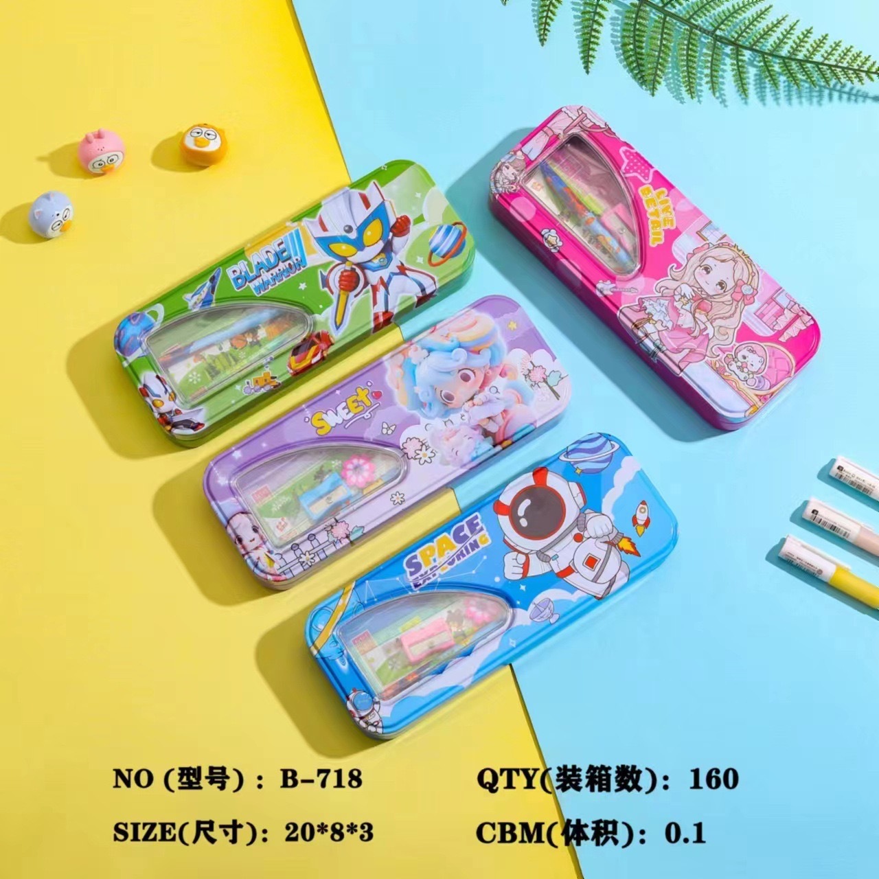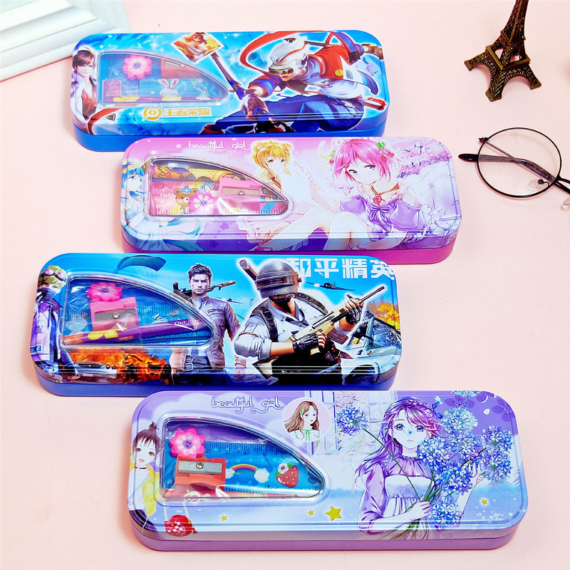도매 만화 더블 레이어 문구 케이스 철 연필 케이스 학생 문구 세트 어린이 대용량 연필 케이스 문구 용품