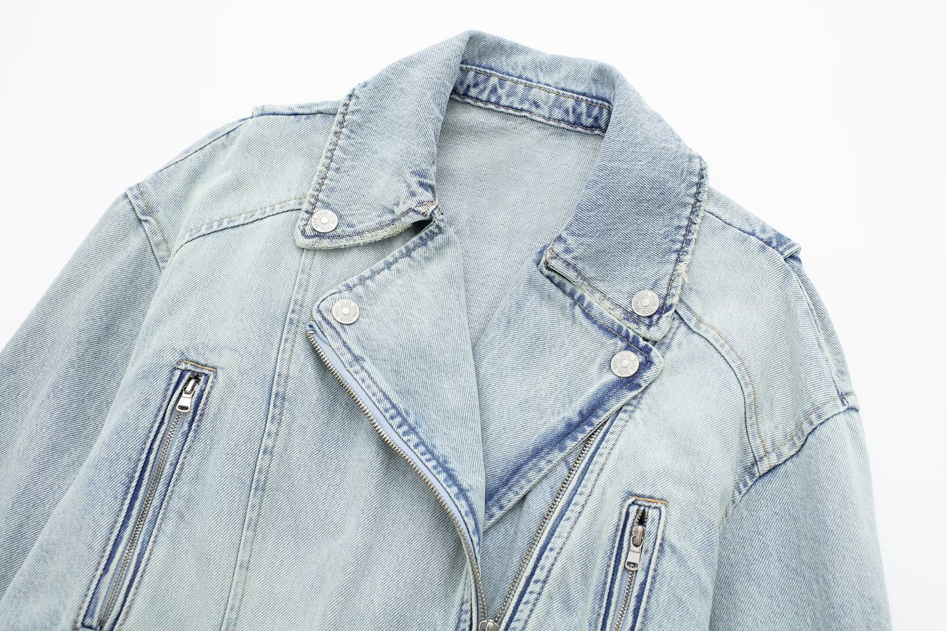 Zatrax2024 유럽과 미국 여성의 가을 새로운 Yuppie 팬 자동차 패션 우아한 벨트 짧은 데님 재킷스토어 가기