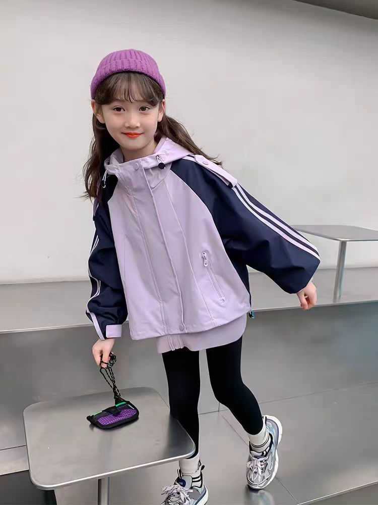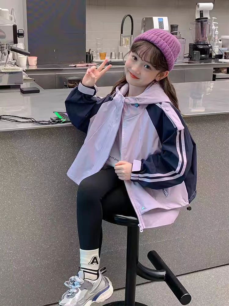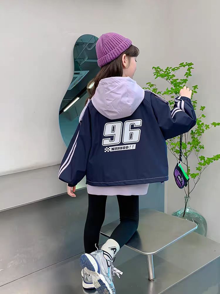 소녀 가을 코트 2024 새로운 도착 큰 소년 소녀의 봄과 가을 소박한 옷 어린이 작업 재킷 윈드 브레이커 탑스토어 가기
