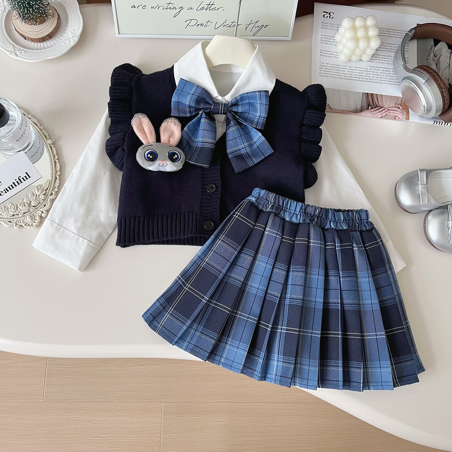 어린이 세트 원피스 새로운 봄과 가을 새로운 소녀의 유행 외국 스타일 토끼 경찰관 JK 대학 스타일 니트 3 피스 세트