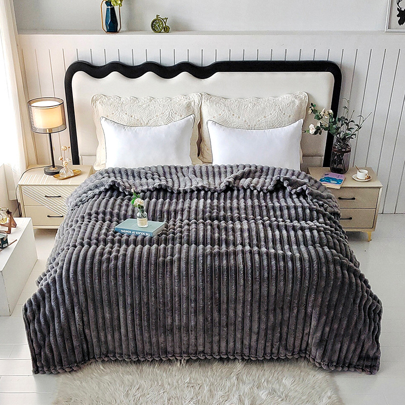 국경 간 새로운 Amazon 북유럽 스타일 4cm 스트립 토끼 모피 플러시 담요 홈 에어컨 낮잠 담요 대외 무역스토어 가기
