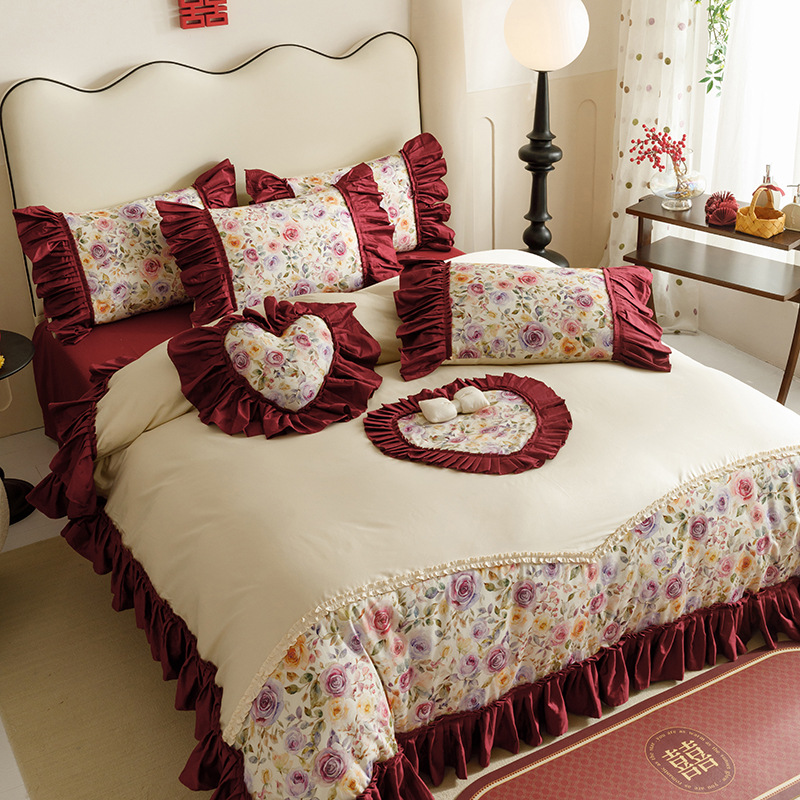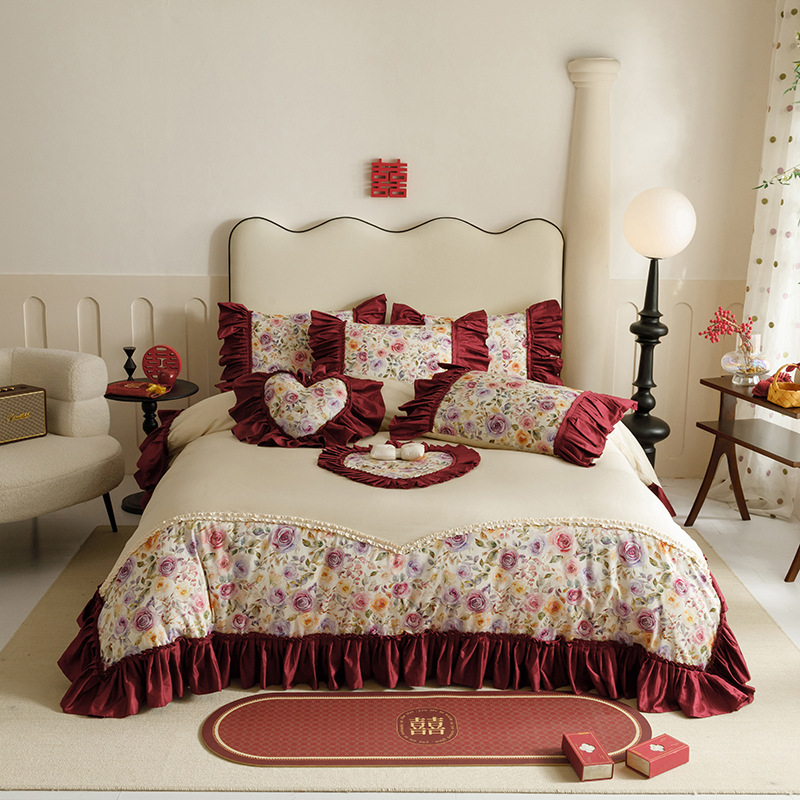 면 긴 스테이플 코튼 새로운 웨딩 4 피스 세트 100 면 자수 침대 시트 퀼트 커버 웨딩 웨딩 침구스토어 가기