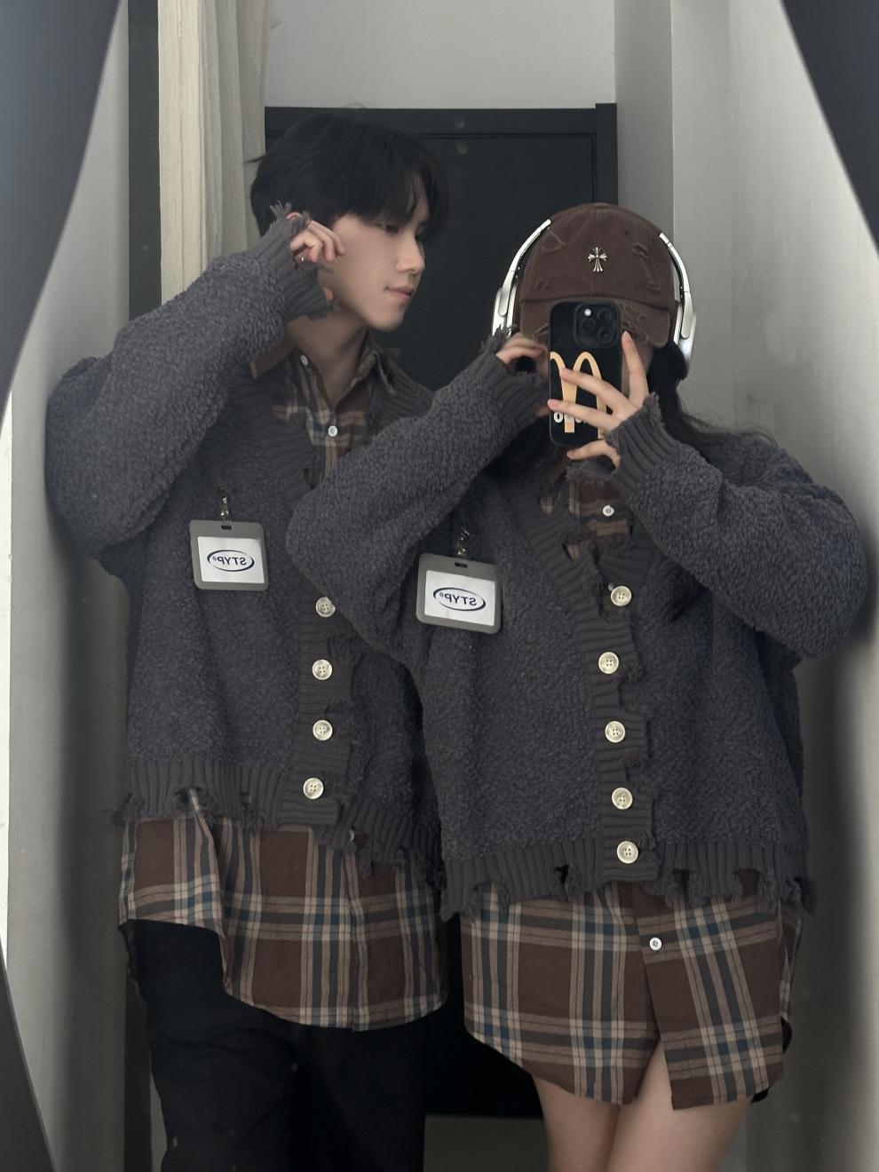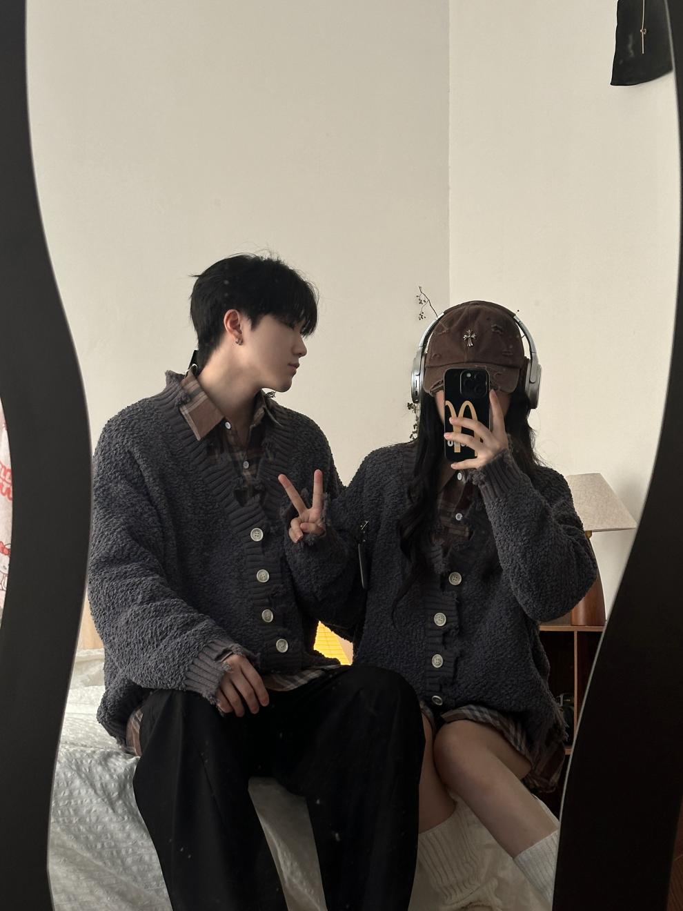 남성과 여성을위한 2024 가을과 겨울 연인 복장은 남성과 여성을위한 가을과 겨울 스웨터 느슨한 캐주얼 코트를 두껍게 만들었습니다.스토어 가기