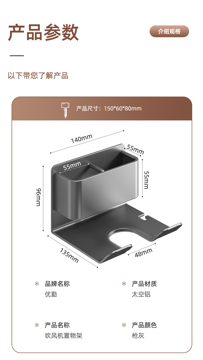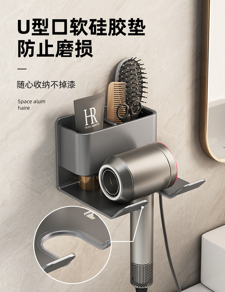 • [칸막이 수납모델] 스페이스 알루미늄 헤어드라이어 랙-건그레이