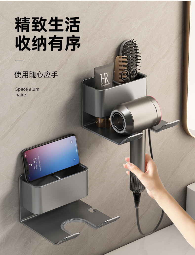 헤어 드라이어 랙 비 천공 화장실 벽에 장착 헤어 드라이어 브래킷 욕실 램 스토리지 랙