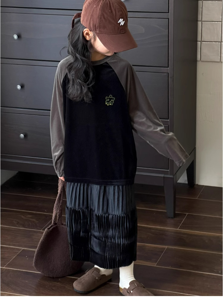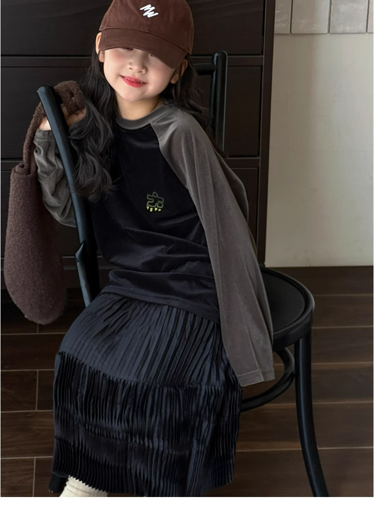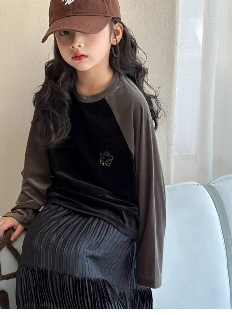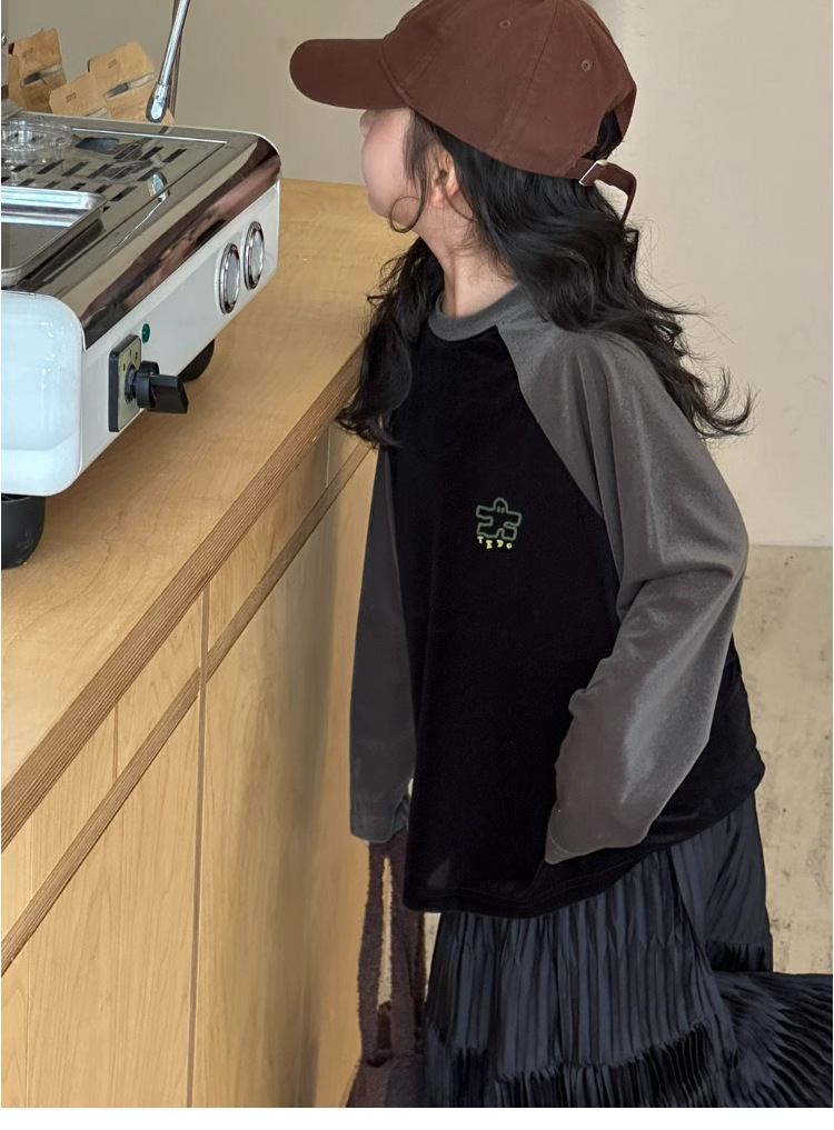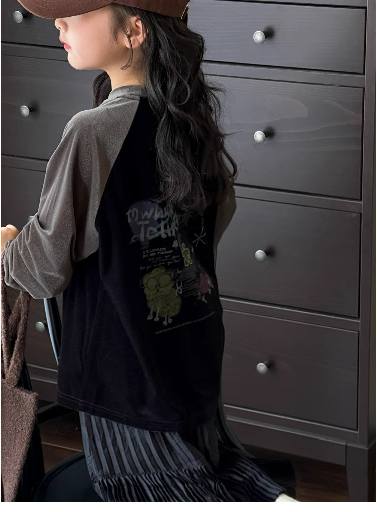 여아 가을 벨벳 긴팔 티셔츠 2025 신상 아동 래글런 슬리브 프린트 중대형 아동 라운드넥 풀오버 상의