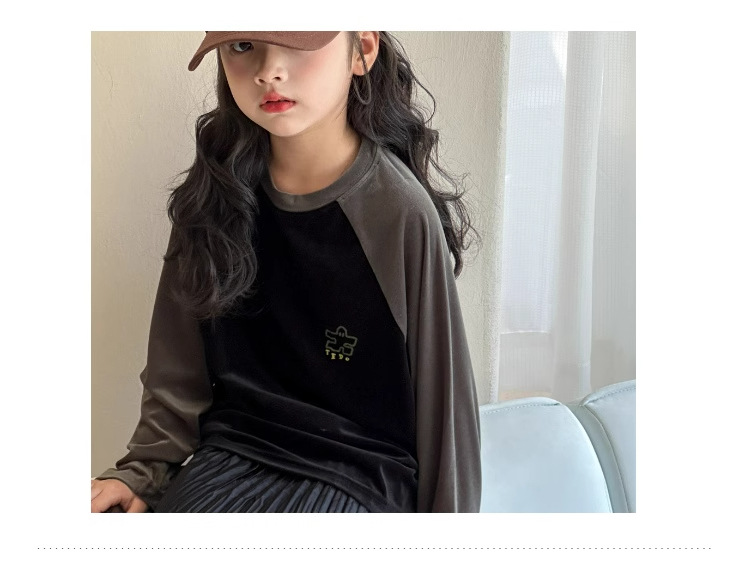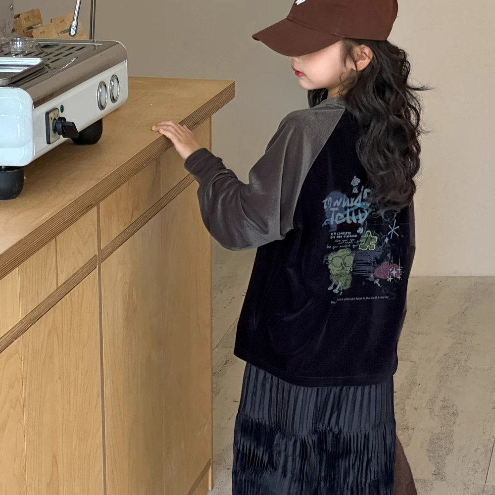 여아 가을 벨벳 긴팔 티셔츠 2025 신상 아동 래글런 슬리브 프린트 중대형 아동 라운드넥 풀오버 상의스토어 가기