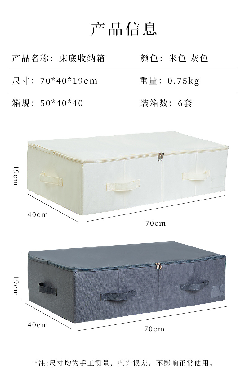 침대 바닥 마감 상자 휴대용 지퍼 저장 상자 옷장 계절 이불 저장 방진 대용량 저장 상자