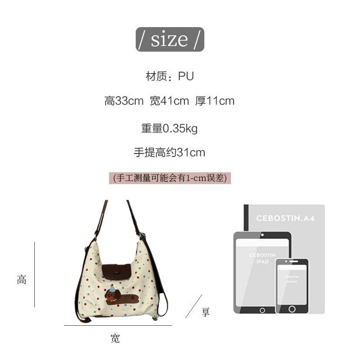 가을과 겨울 초콜릿 강아지 웨이브 도트 구름 가방 여성의 새로운 대학 스타일 배낭 캐주얼 숄더 토트 백스토어 가기