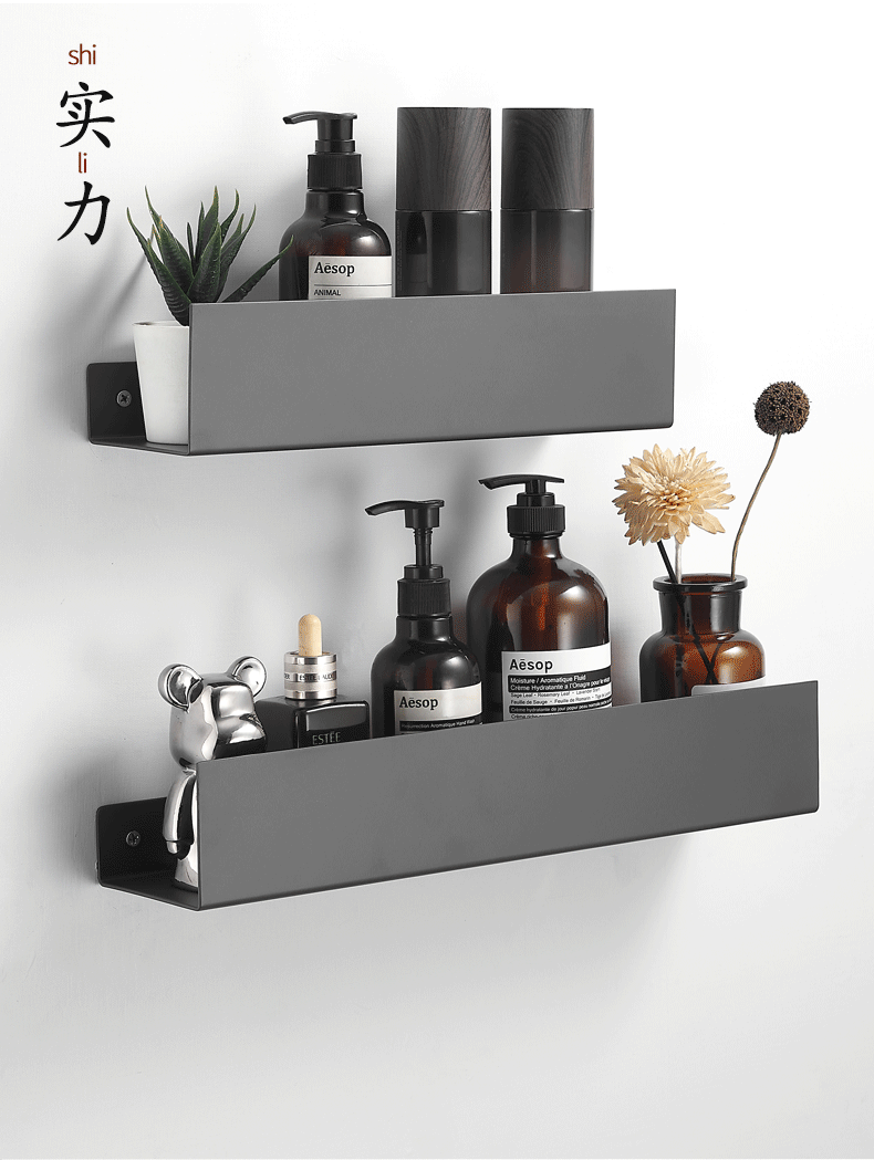 공간 알루미늄 욕실 저장 랙 미니멀리스트 욕실 파티션 화장실 거울 전면 세척 테이블 저장 랙 펀치 프리스토어 가기