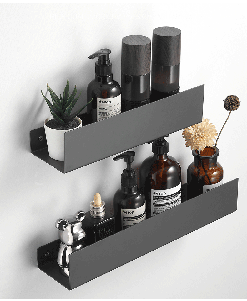공간 알루미늄 욕실 저장 랙 미니멀리스트 욕실 파티션 화장실 거울 전면 세척 테이블 저장 랙 펀치 프리