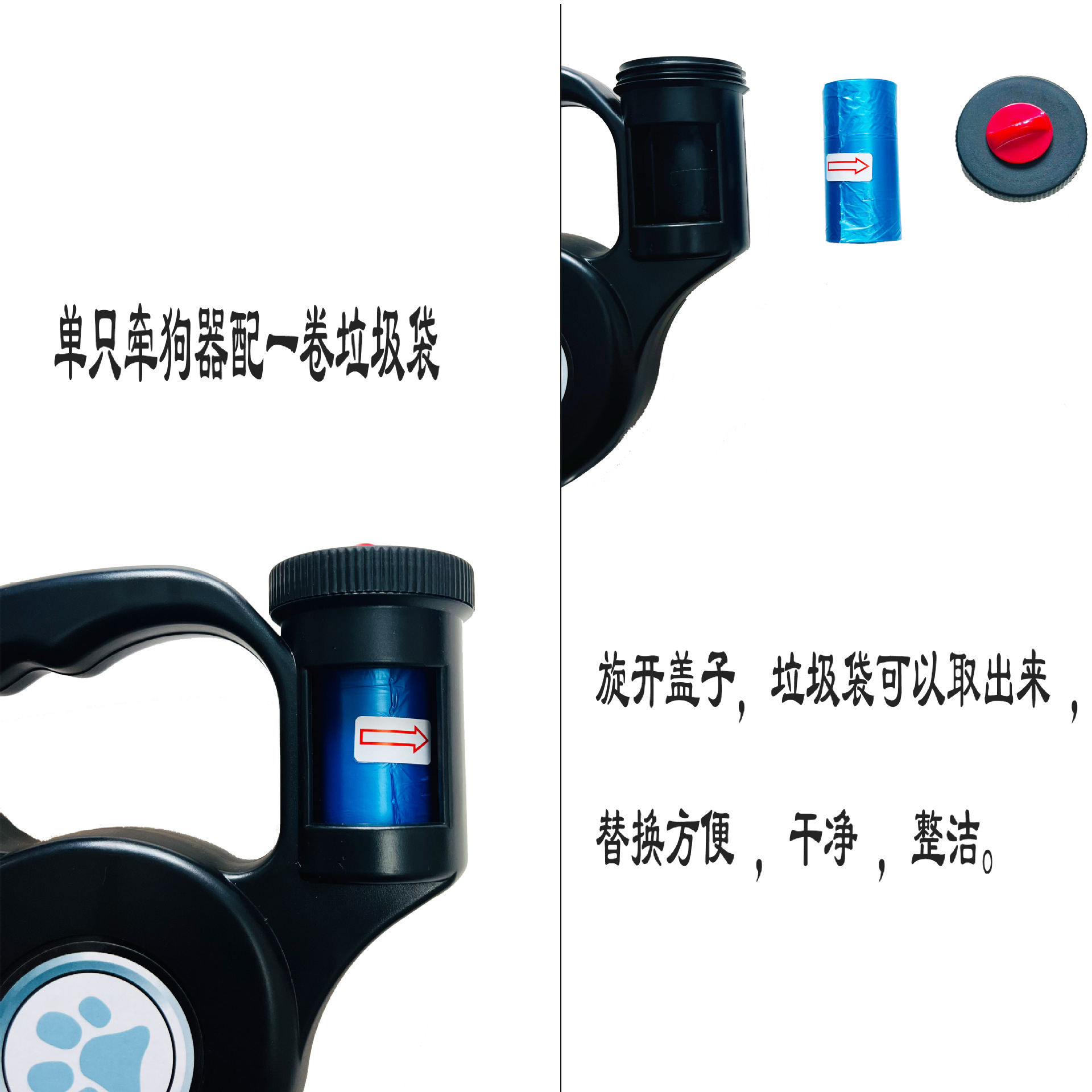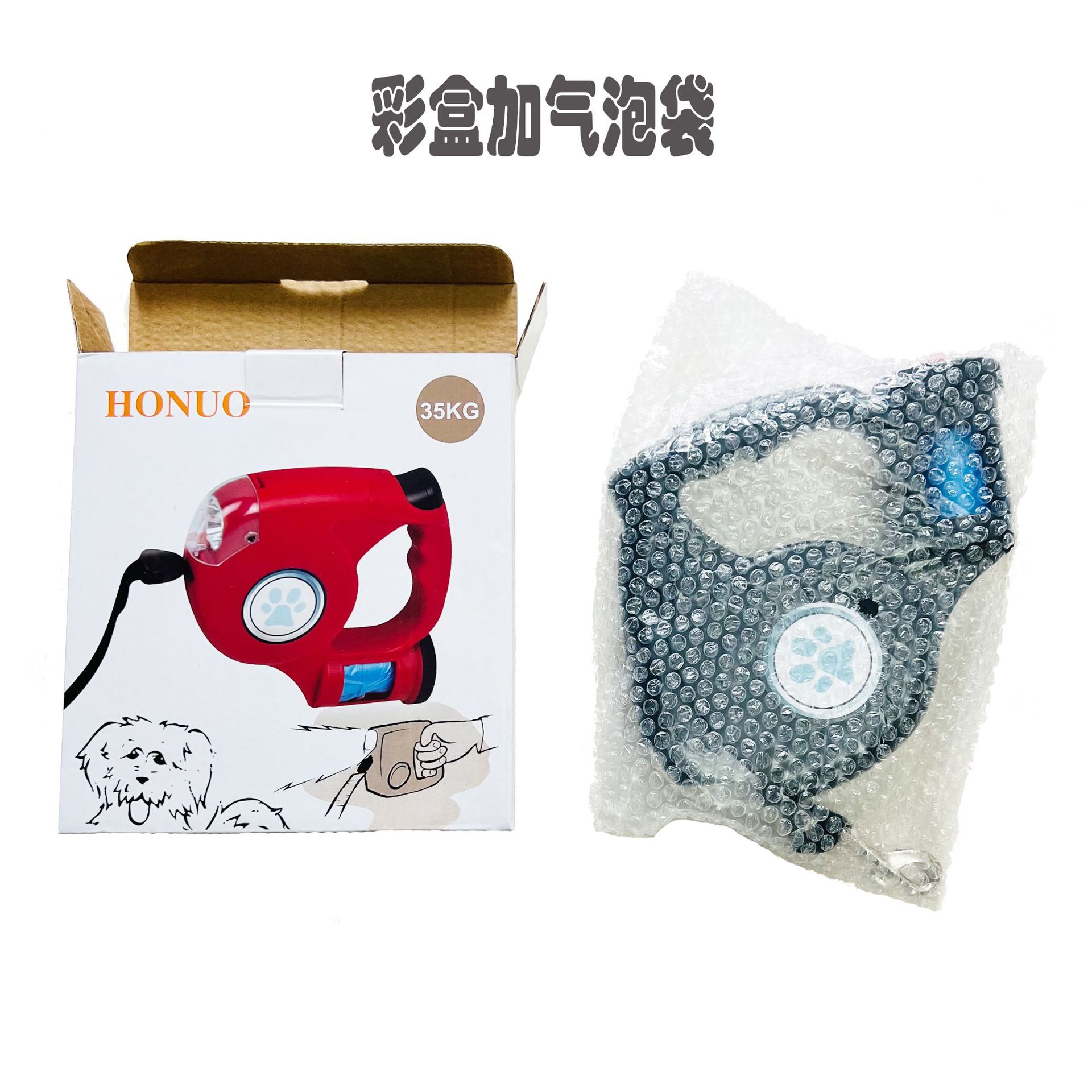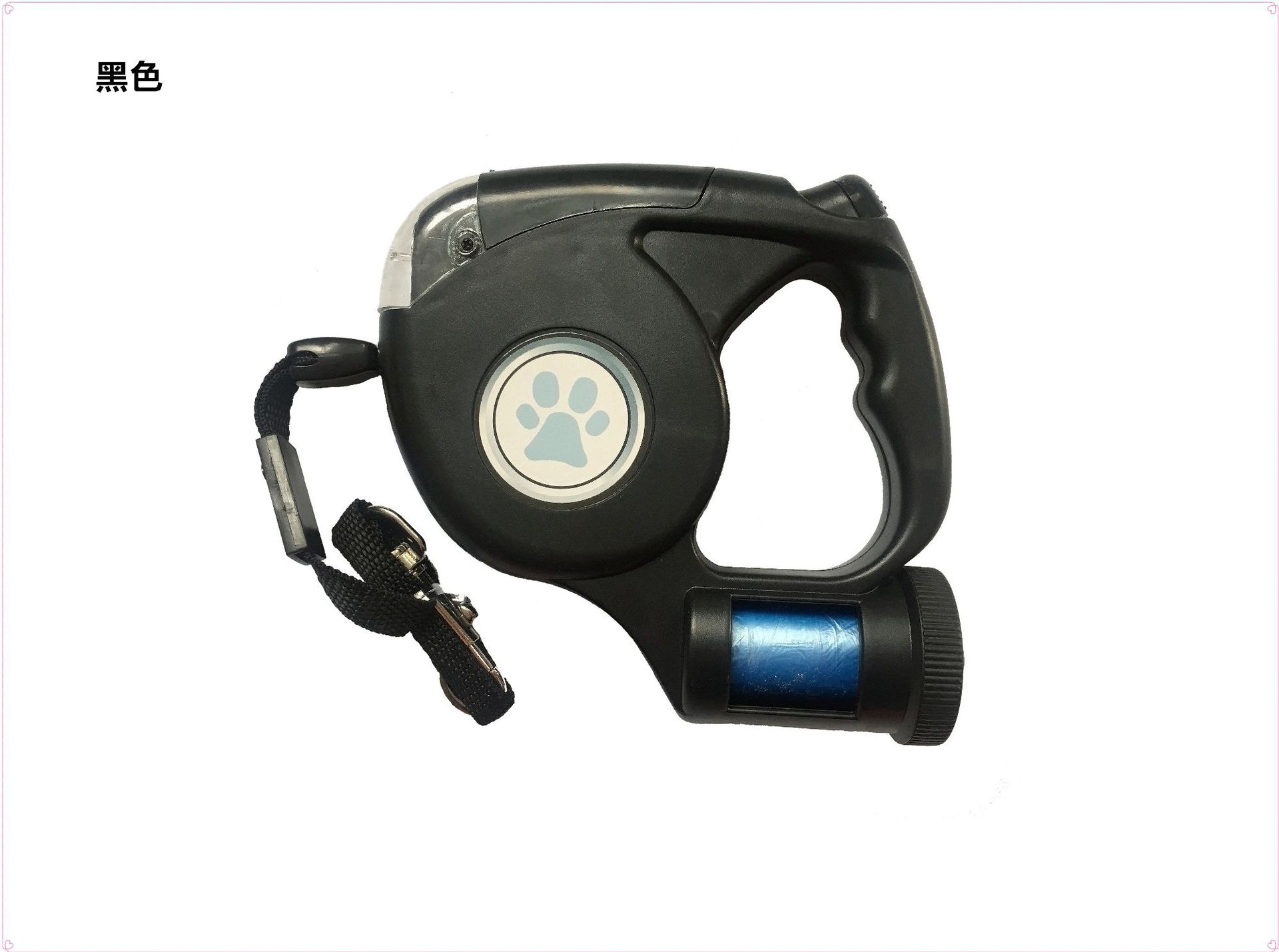 공장 공급 애완 동물 개 견인기 라운드 로프 램프 쓰레기 봉투 자동 개폐식 가죽 끈 개 가죽 끈 4LED