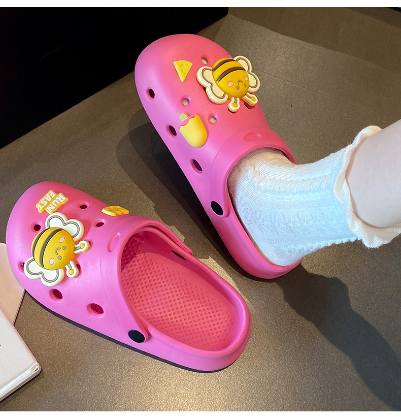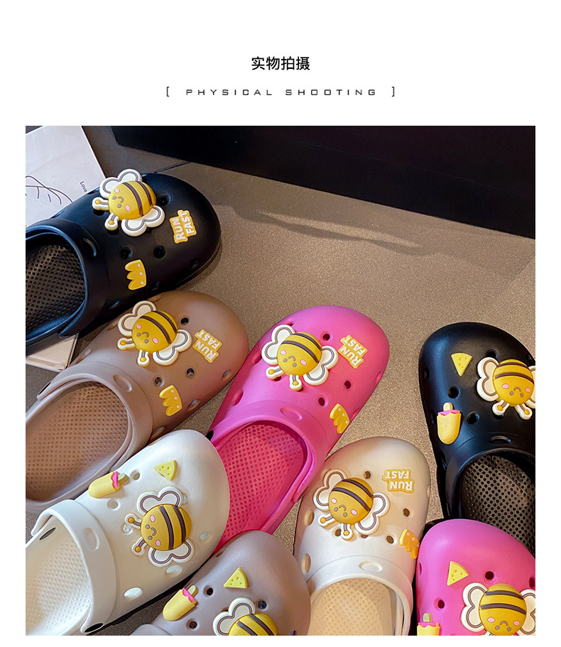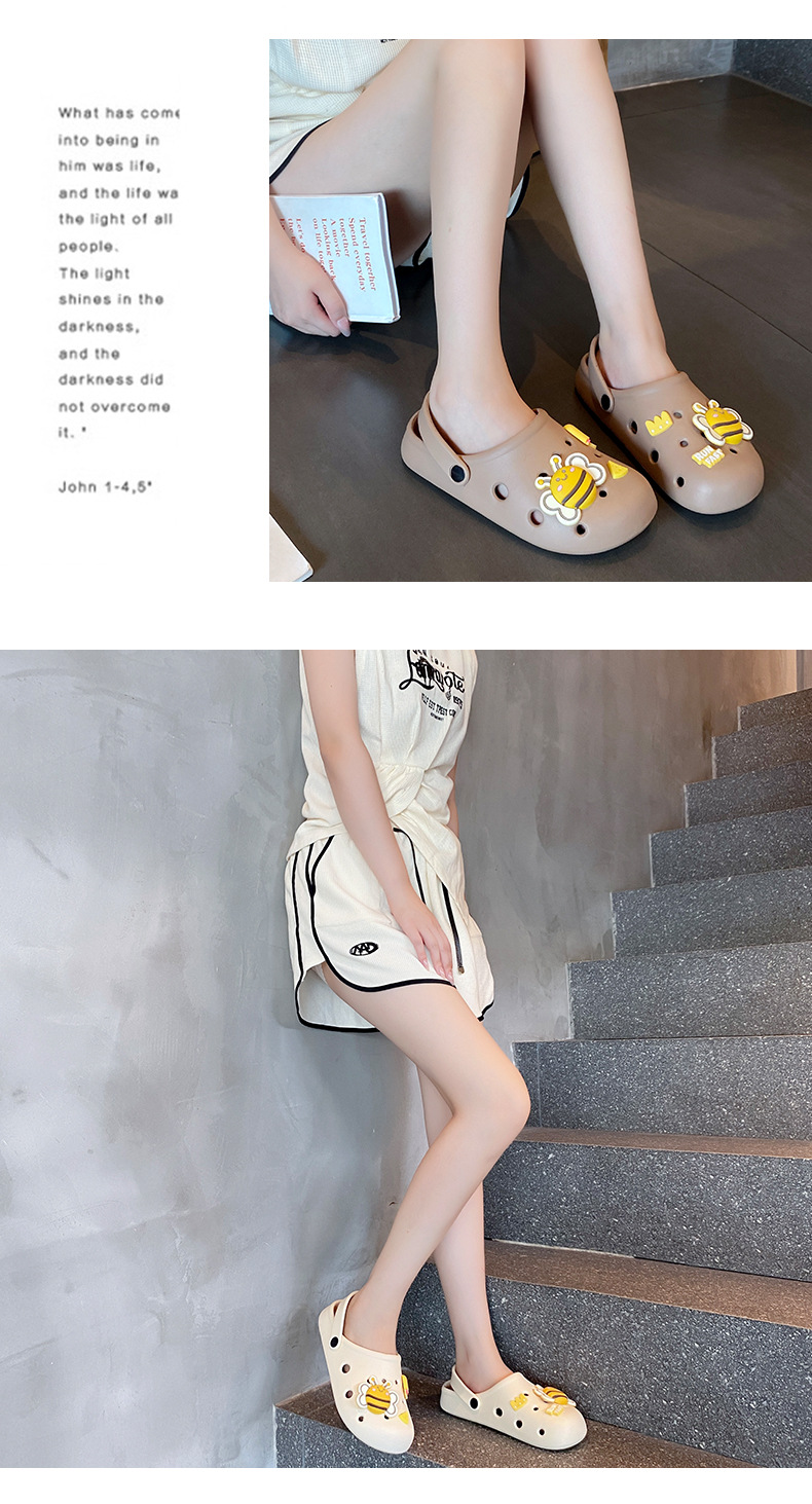 만화 꿀벌 구멍 신발 여성의 여름 외부 착용 미끄럼 방지 비치 신발 꽃 분리 가능한 DIY 바오터 하프 슬리퍼