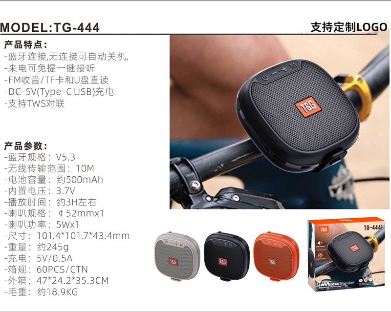 국경 간 TG444 사이클링 스피커 야외 카드 자전거 블루투스 스피커 카드 tws 휴대용 블루투스 오디오스토어 가기