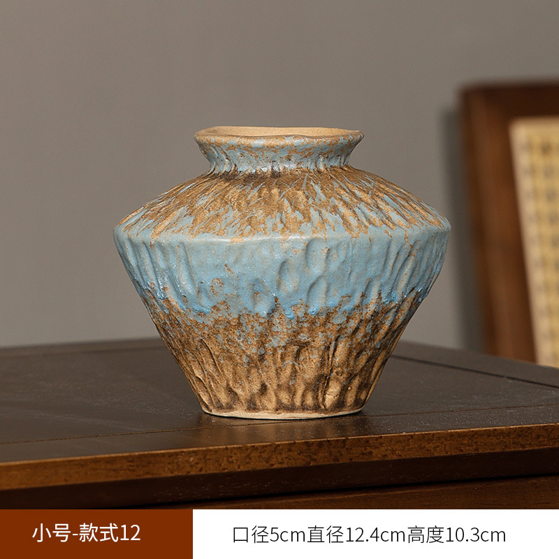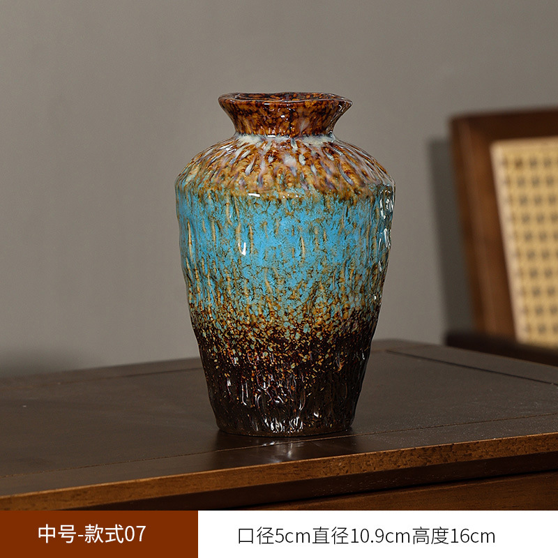 유럽식 레트로 스타일 세라믹 꽃병 거실 고급 스타일 거친 도자기 냄비 간단한 말린 꽃 꽃 장식 꽃 장식품스토어 가기