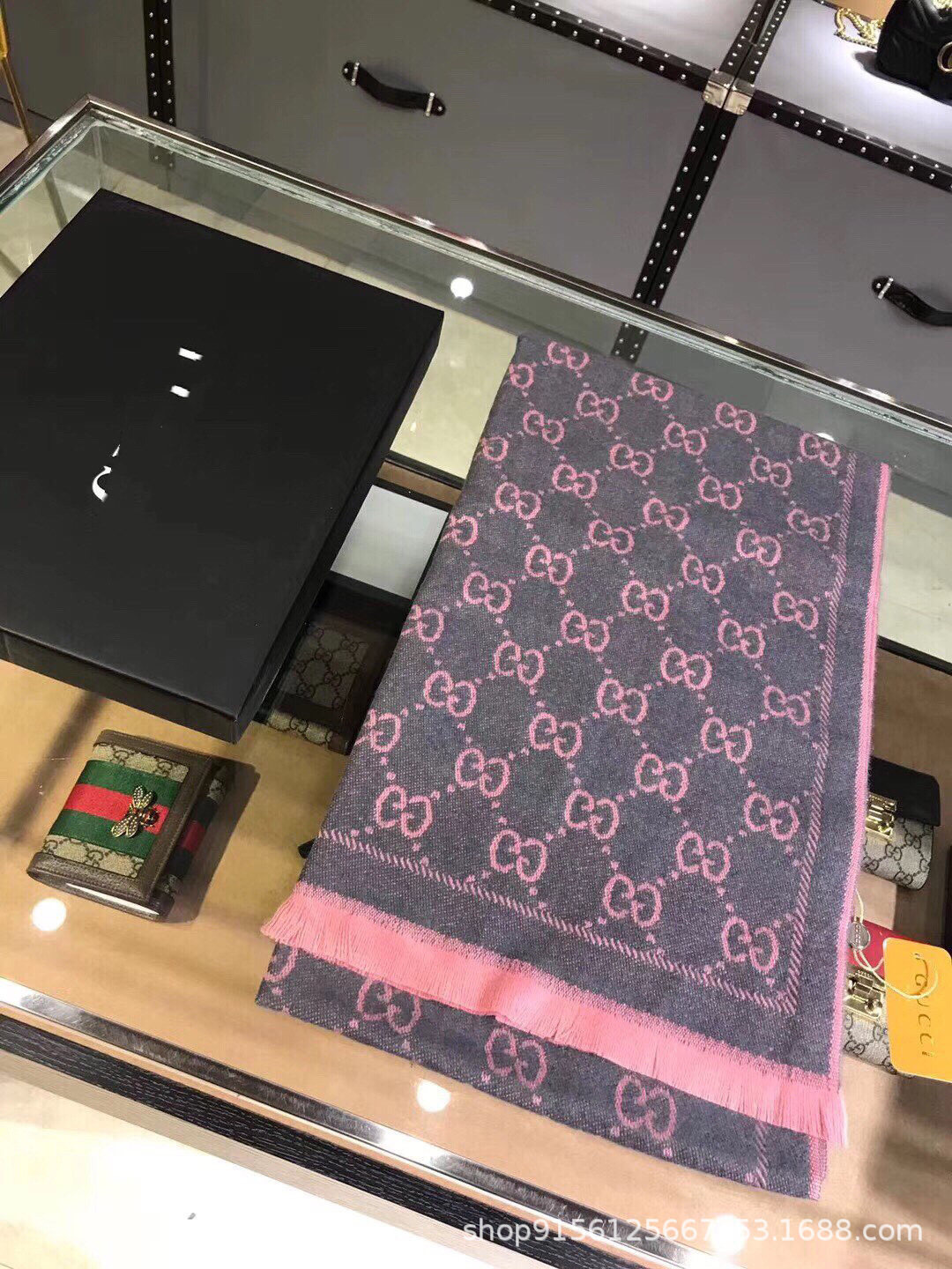 가을과 겨울 클래식 스카프 자카드 로고 양면 검은 색 회색 목도리 울 남성과 여성 회색 분말 큰 문자 G 스카프스토어 가기