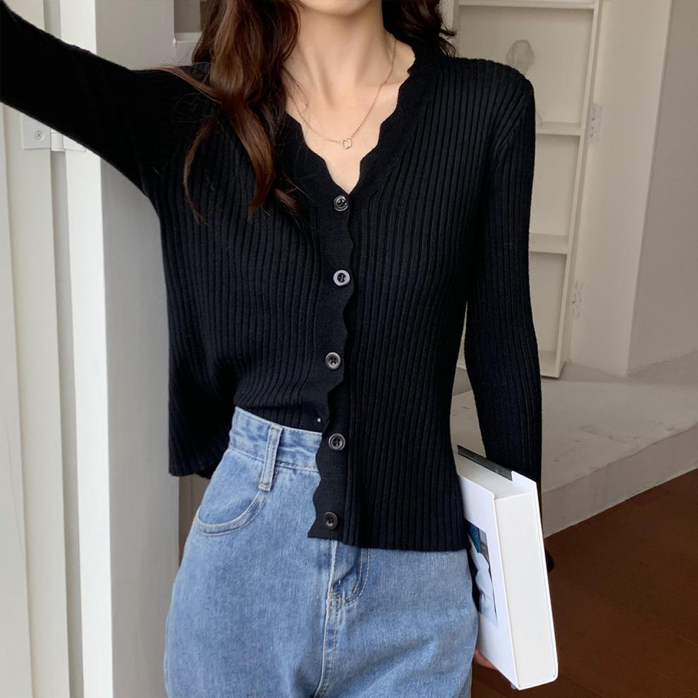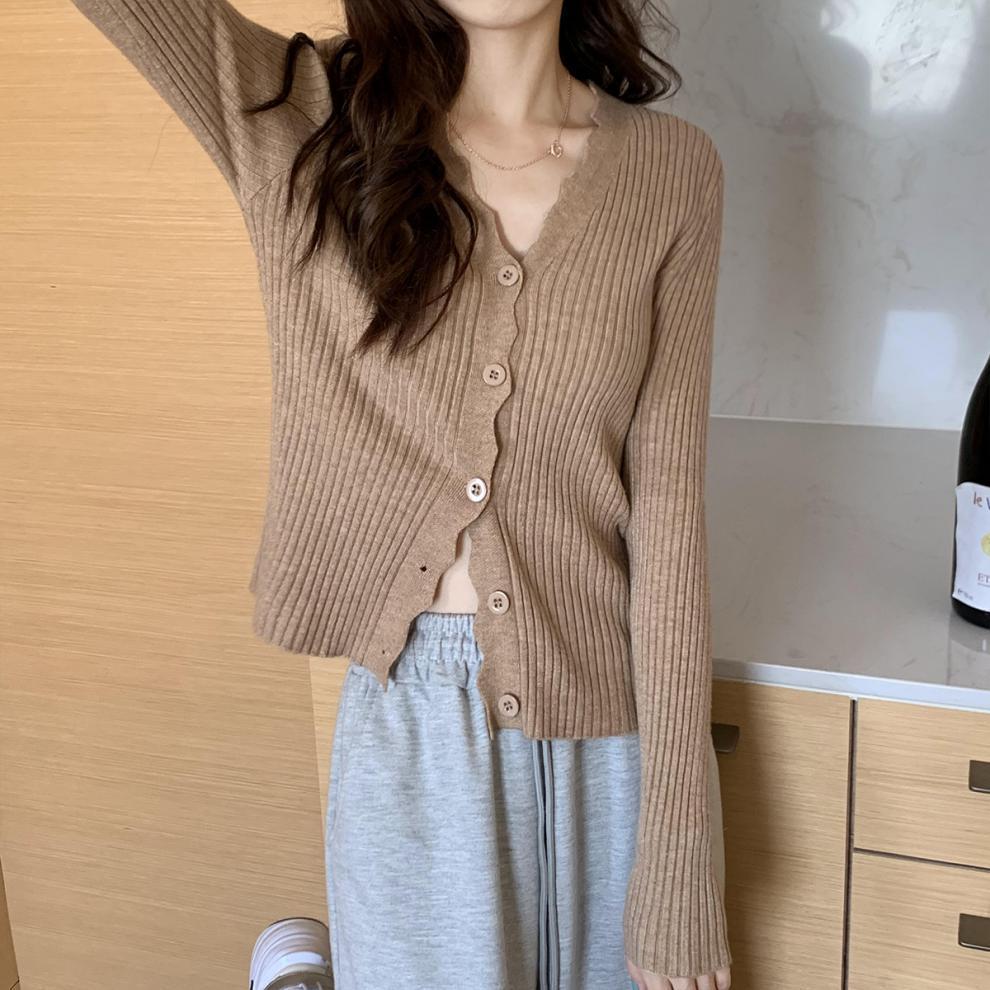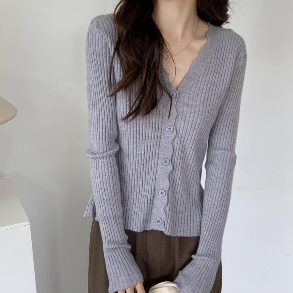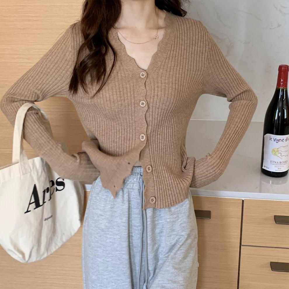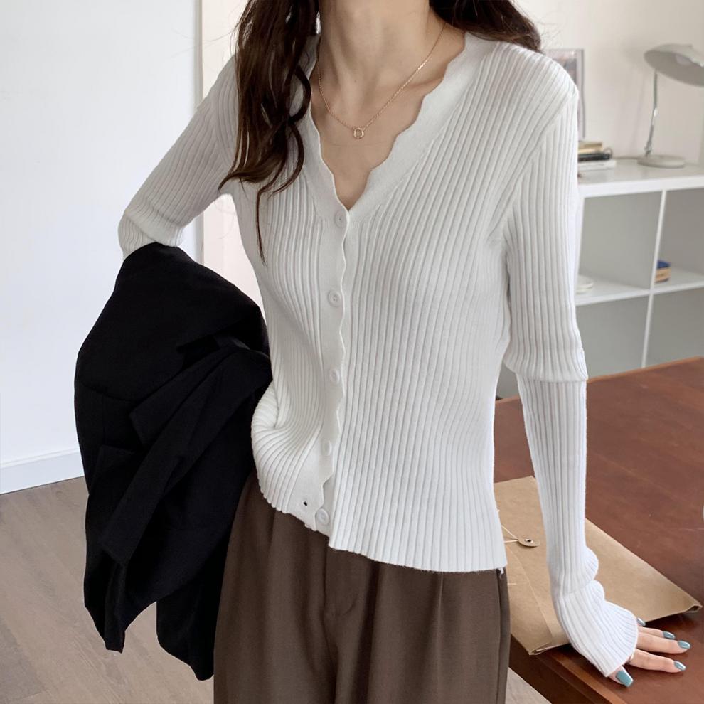 2024 년 초 가을 새로운 한국식 슬리밍 V-넥 코어 스핀 원사 슬림 핏 올매치 베이스 카디건 스웨터 탑 여자 트렌디스토어 가기