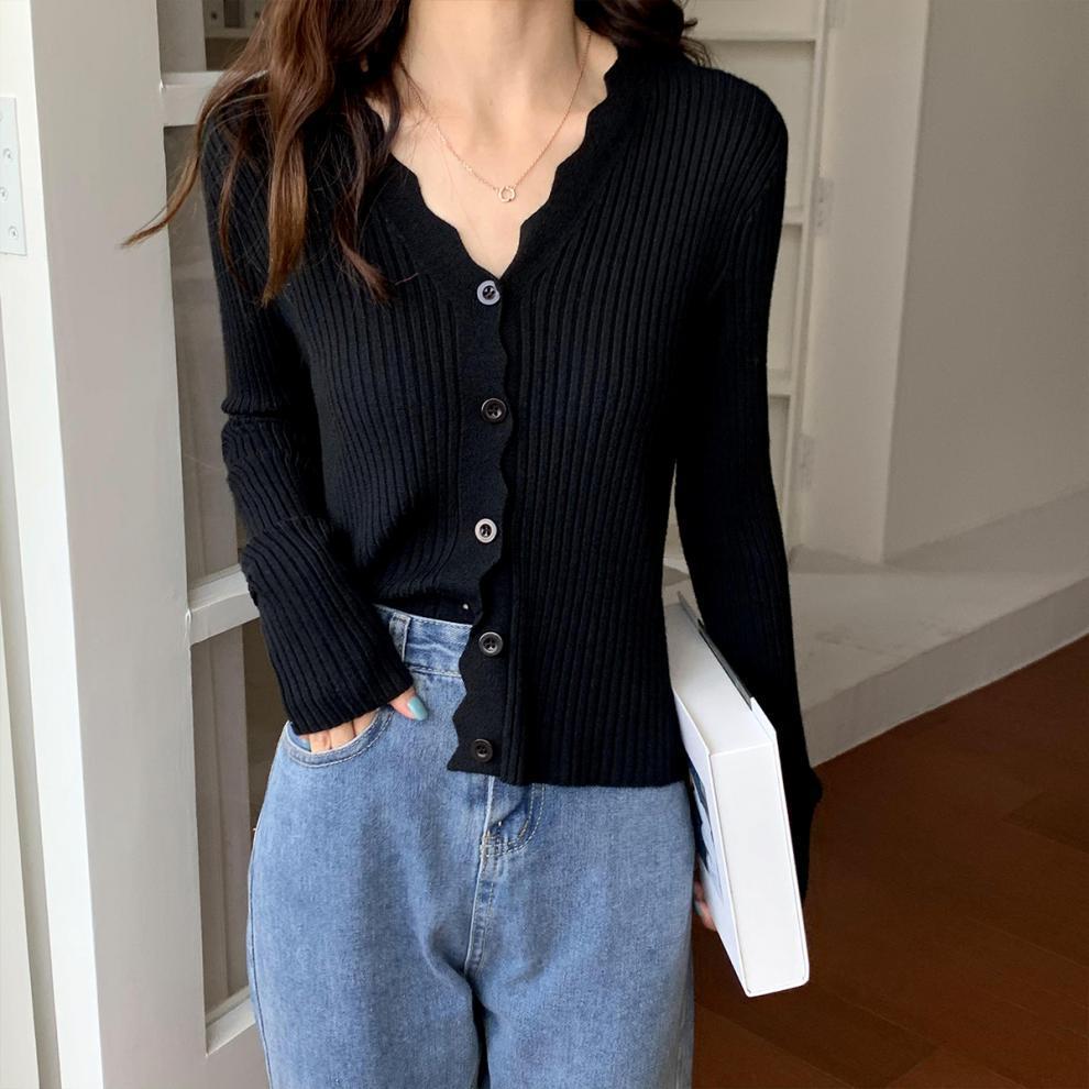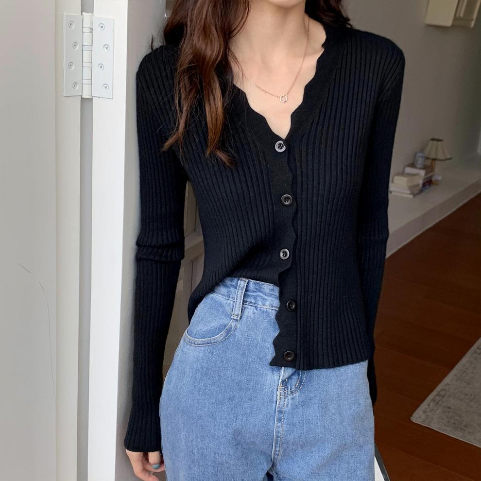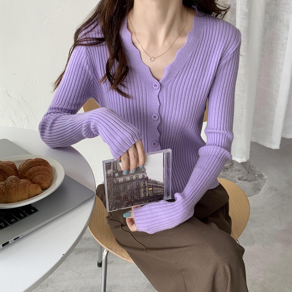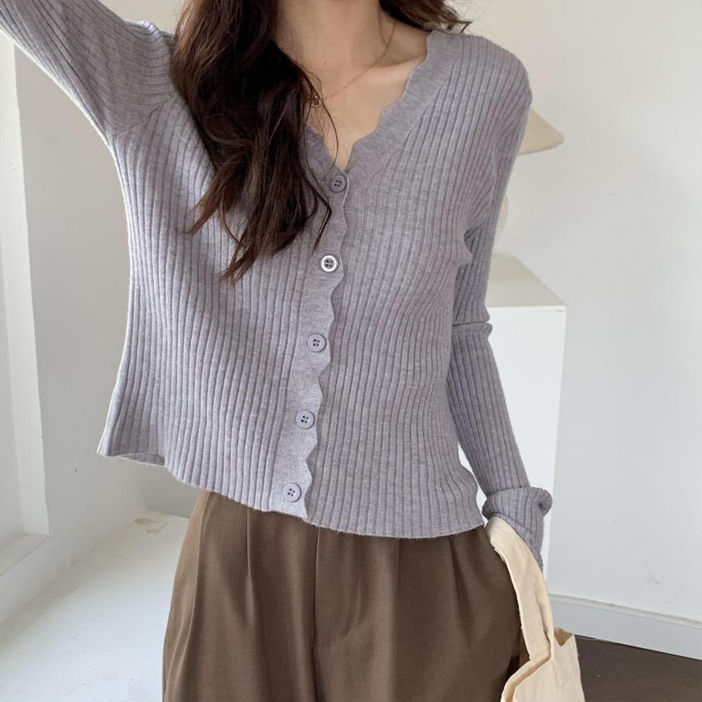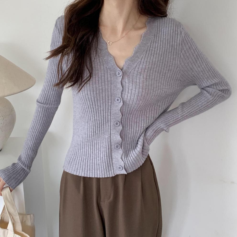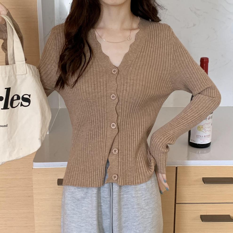 2024 년 초 가을 새로운 한국식 슬리밍 V-넥 코어 스핀 원사 슬림 핏 올매치 베이스 카디건 스웨터 탑 여자 트렌디스토어 가기