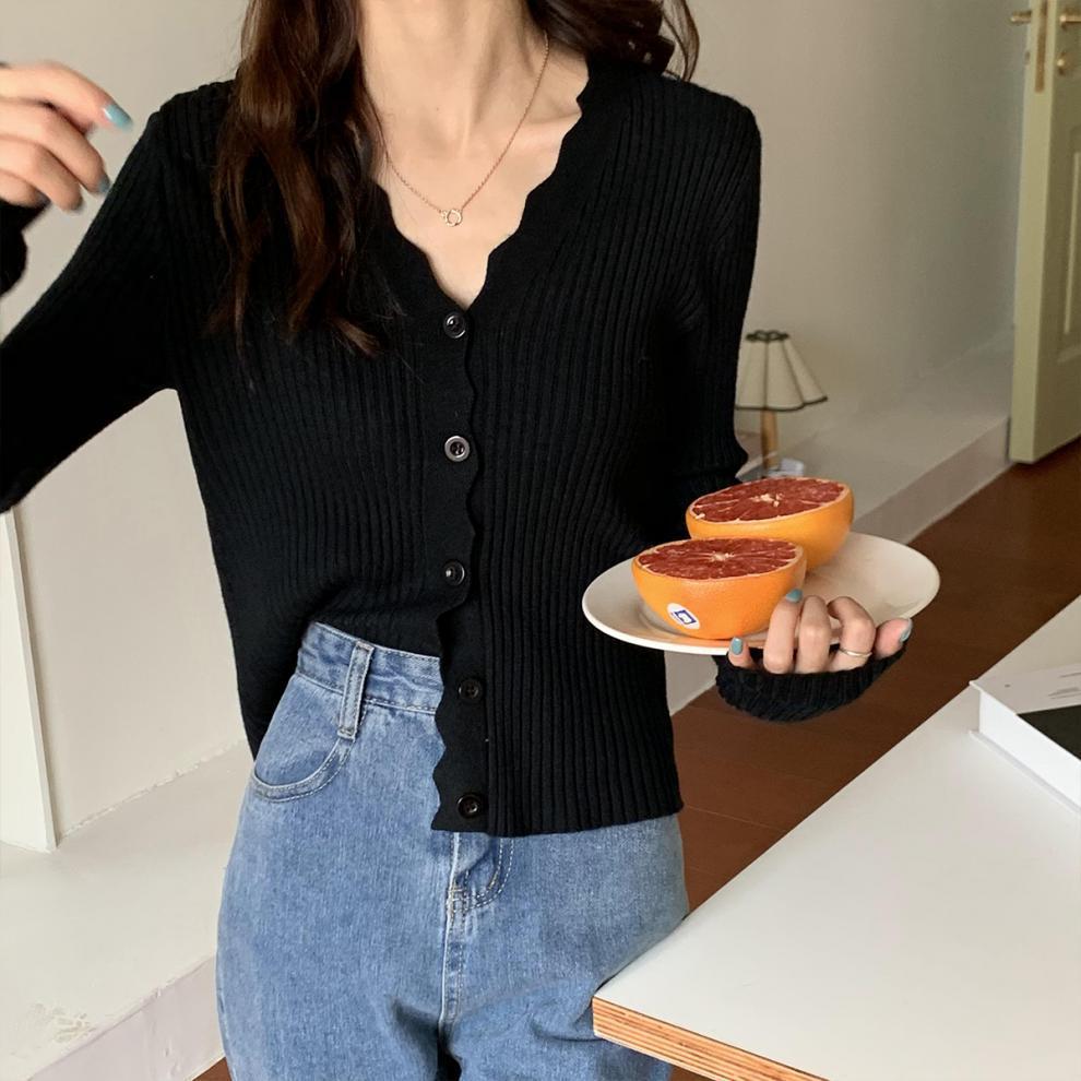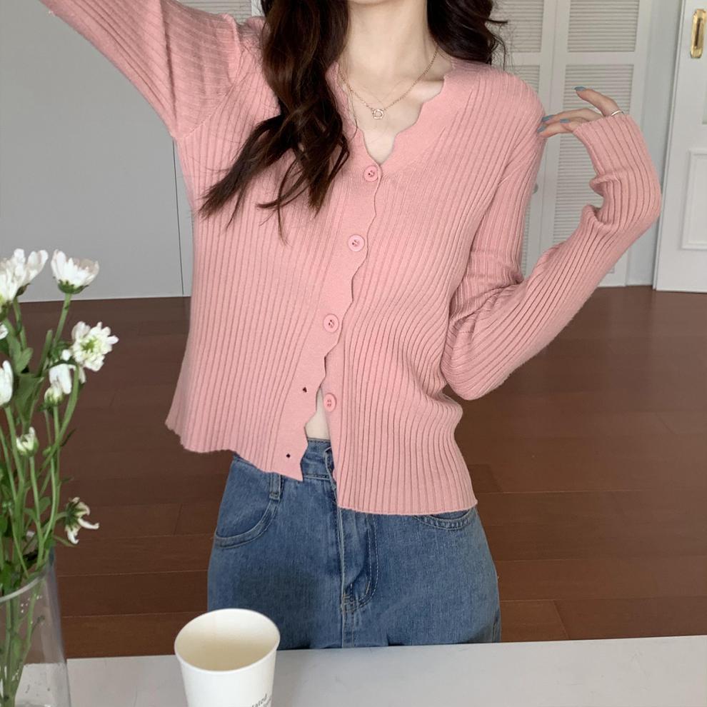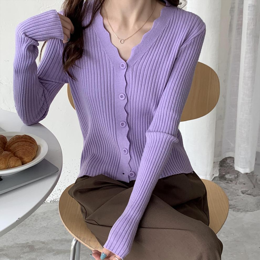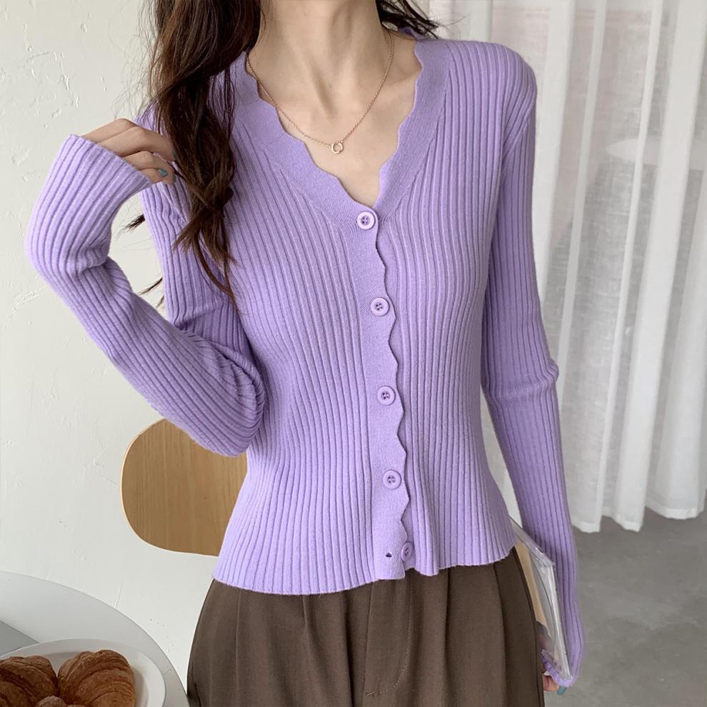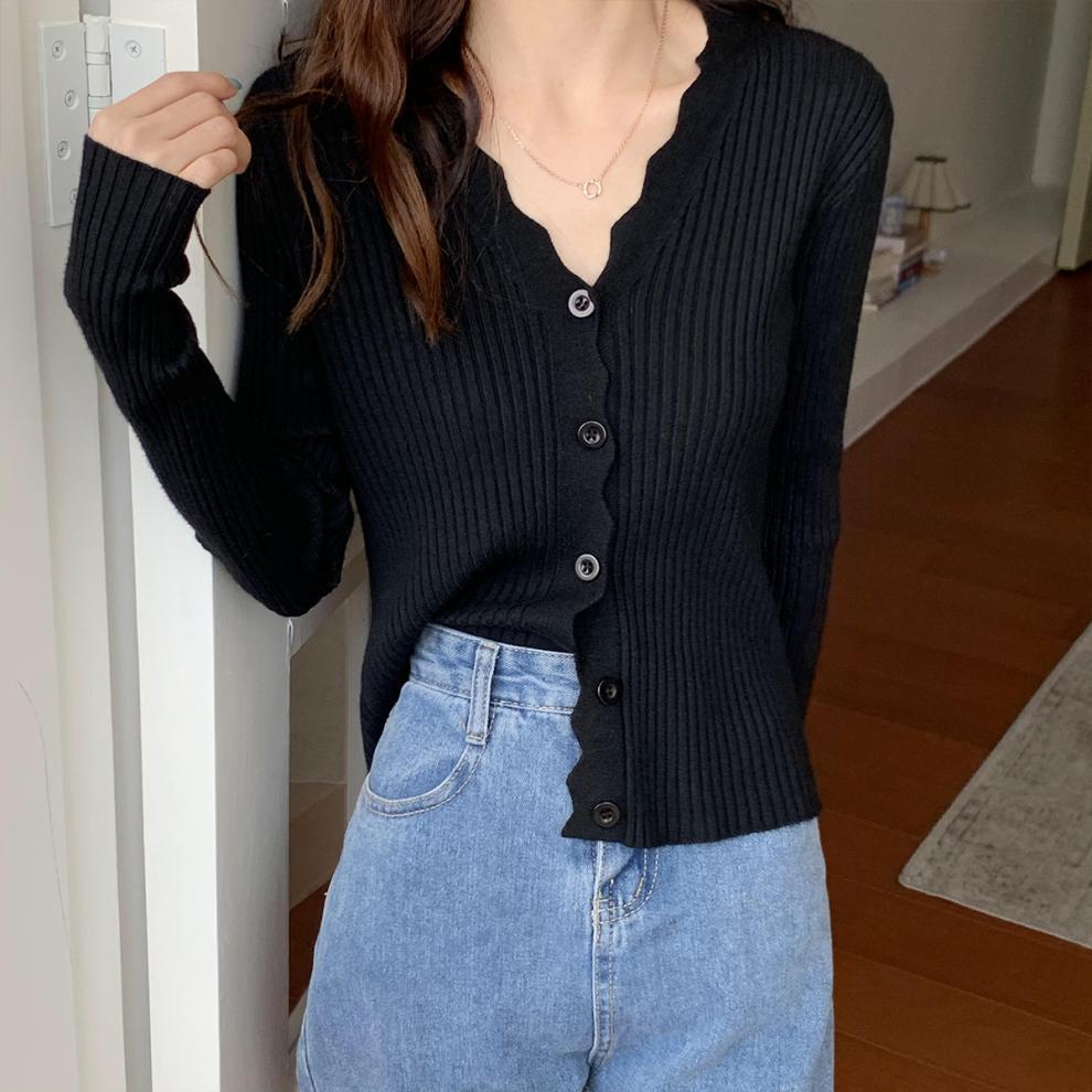 2024 년 초 가을 새로운 한국식 슬리밍 V-넥 코어 스핀 원사 슬림 핏 올매치 베이스 카디건 스웨터 탑 여자 트렌디스토어 가기