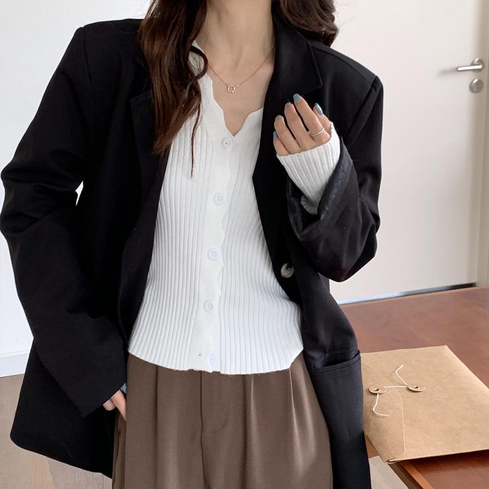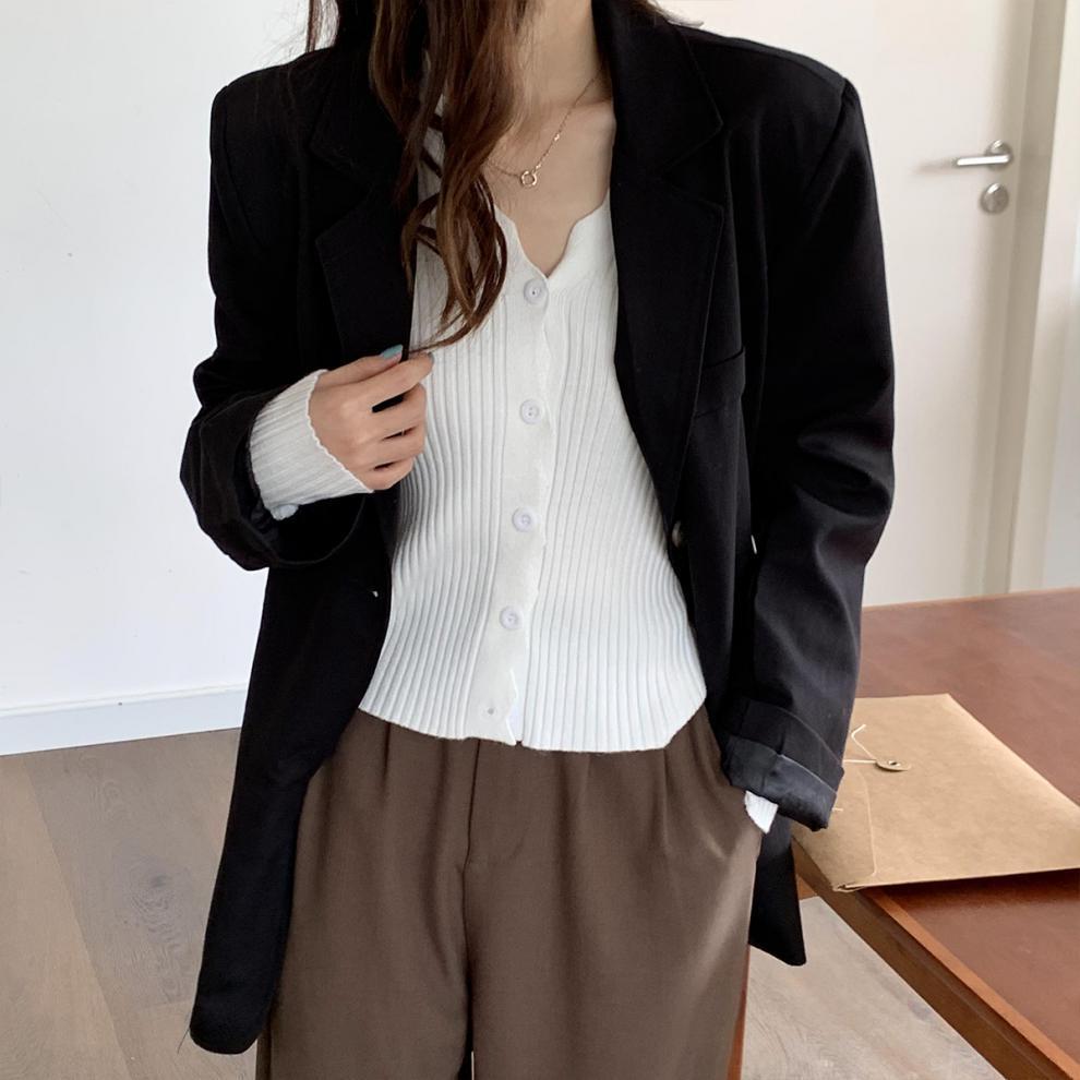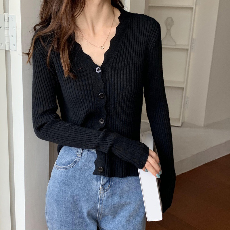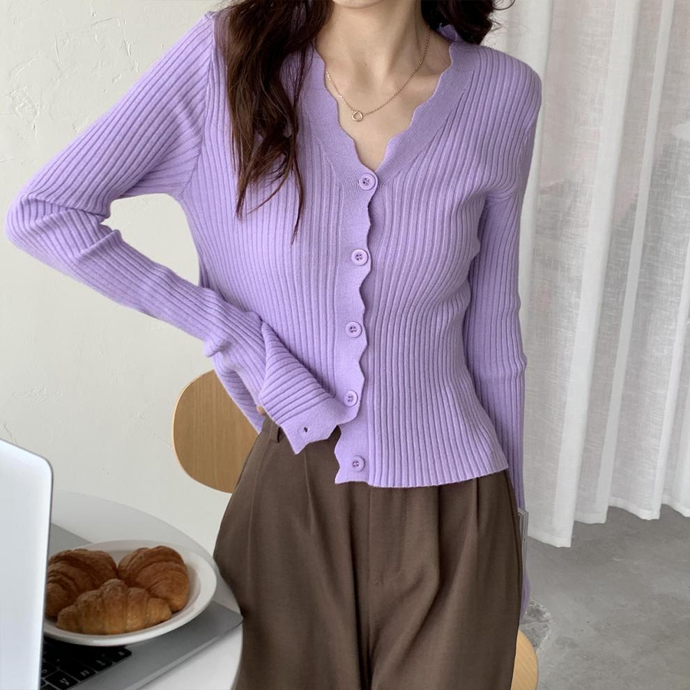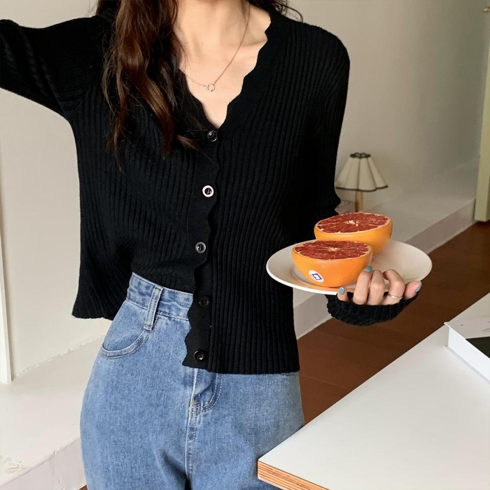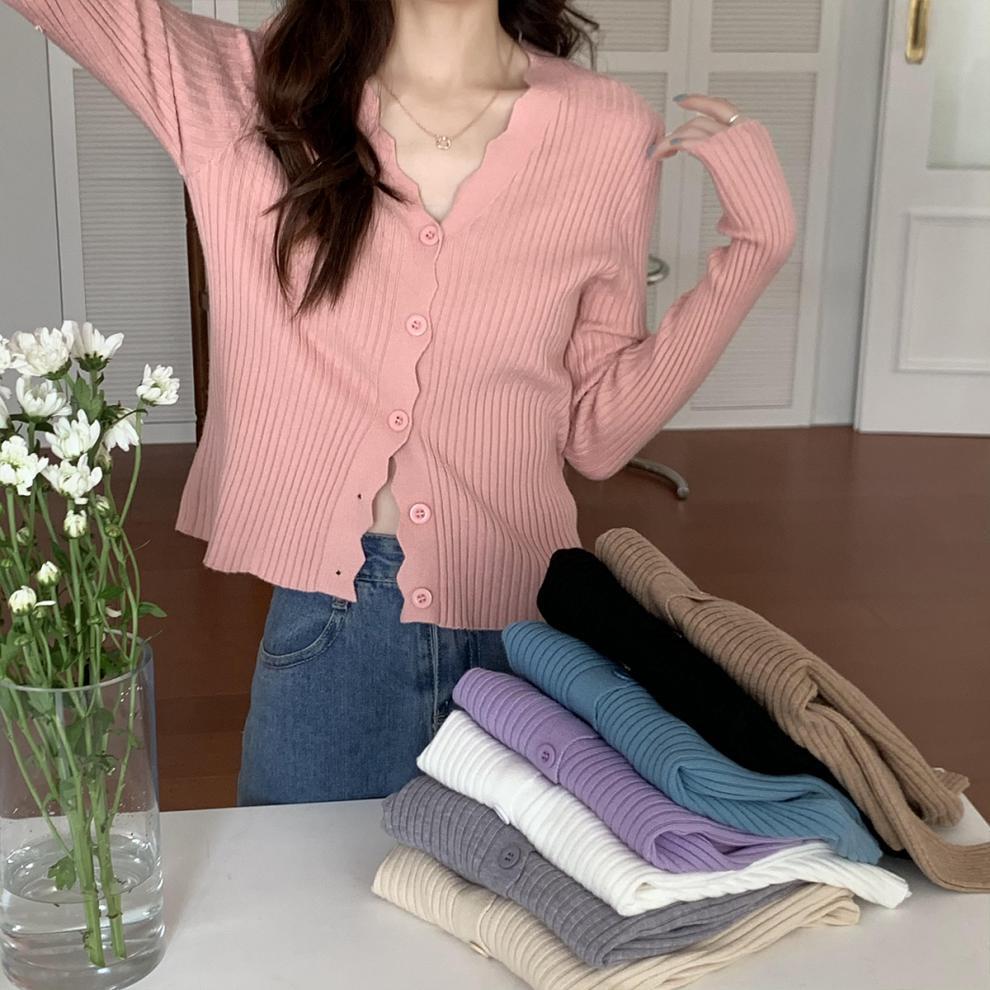 2024 년 초 가을 새로운 한국식 슬리밍 V-넥 코어 스핀 원사 슬림 핏 올매치 베이스 카디건 스웨터 탑 여자 트렌디스토어 가기