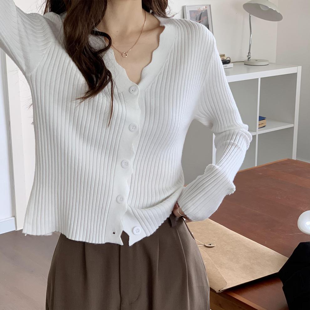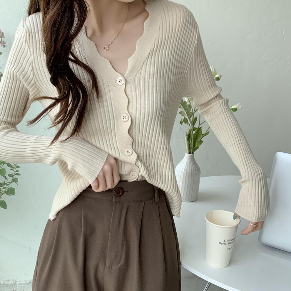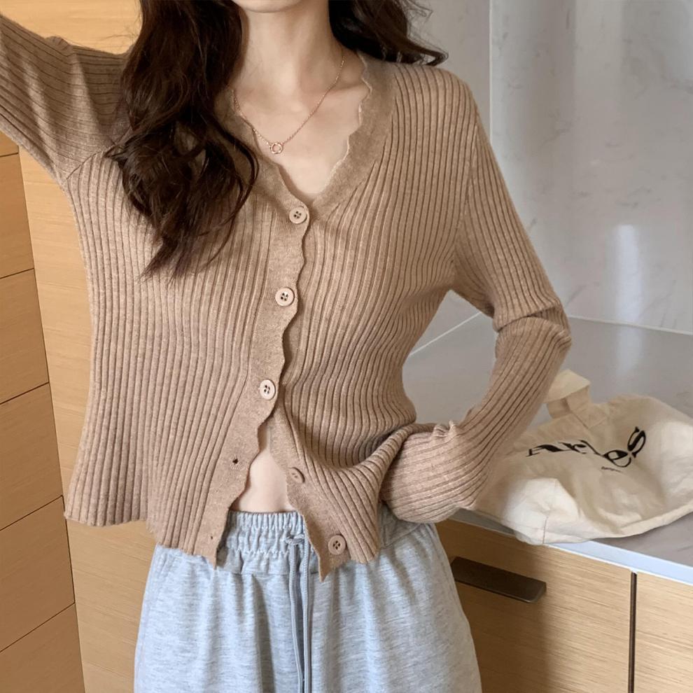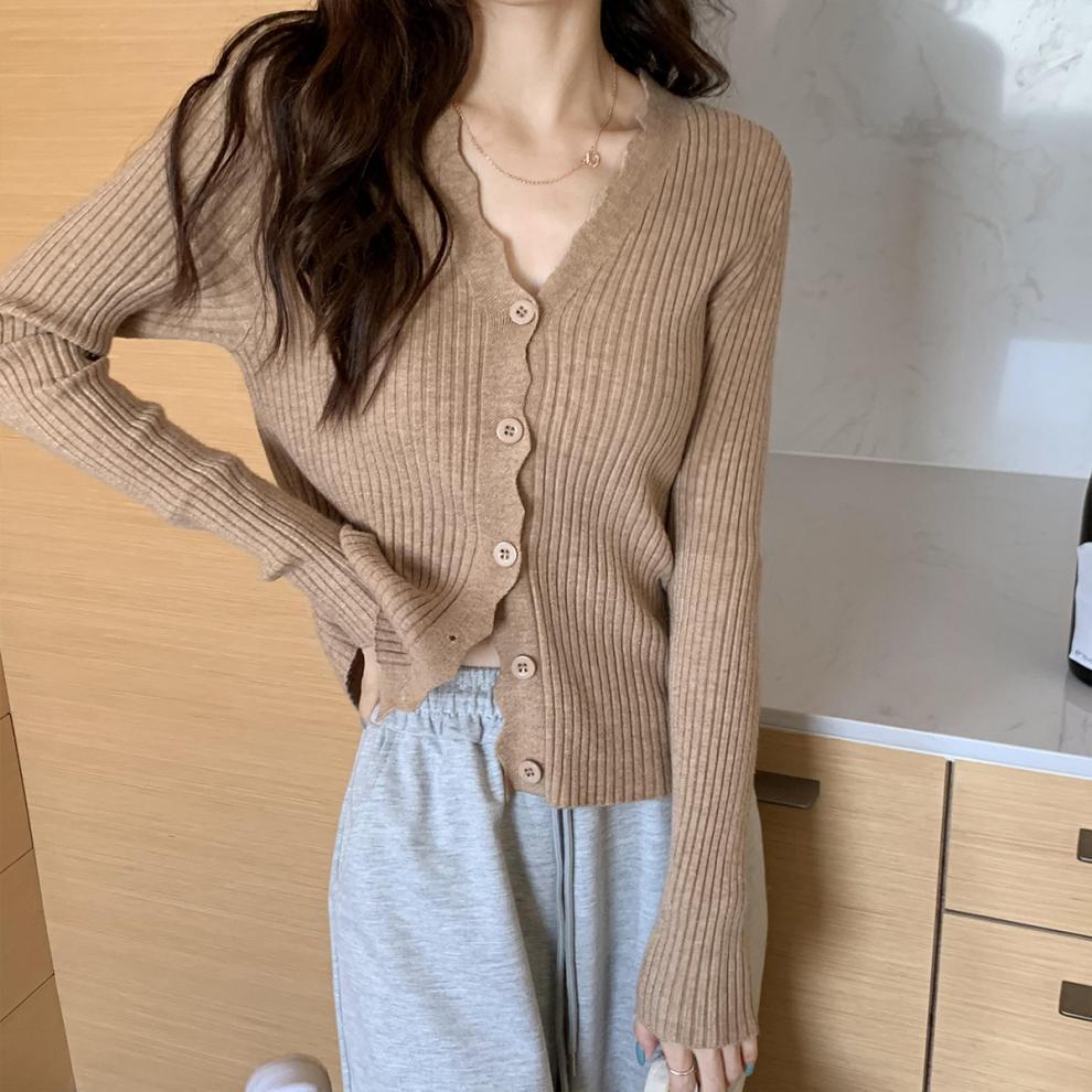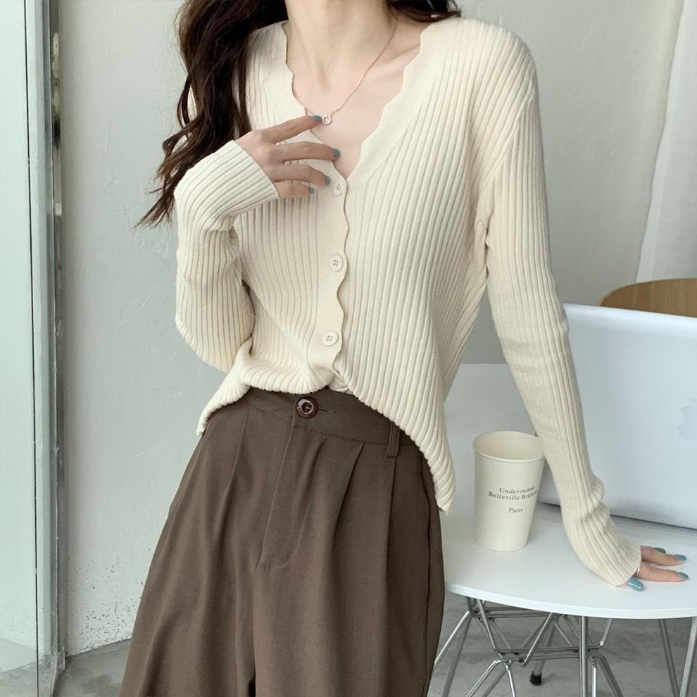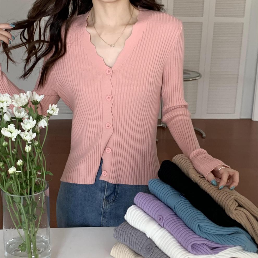 2024 년 초 가을 새로운 한국식 슬리밍 V-넥 코어 스핀 원사 슬림 핏 올매치 베이스 카디건 스웨터 탑 여자 트렌디