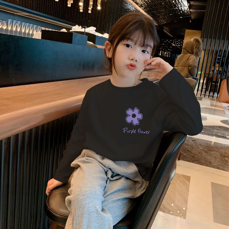 H2329 #100% 면 어린이 긴 소매 셔츠 봄과 가을 만화 인쇄 서양식 레저 티셔츠 아기 소녀 조수