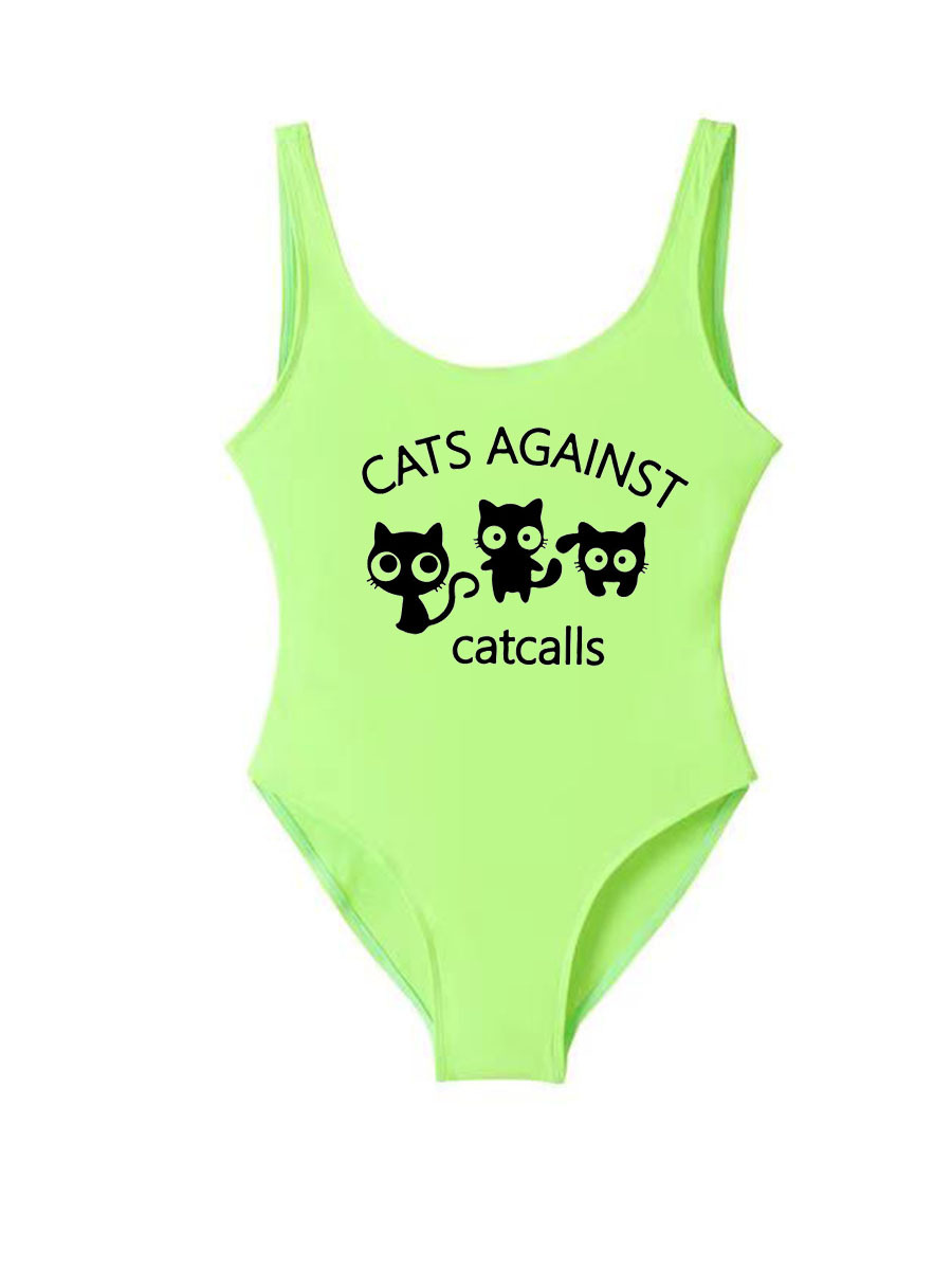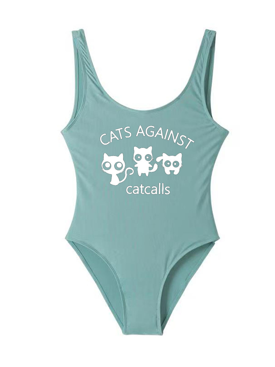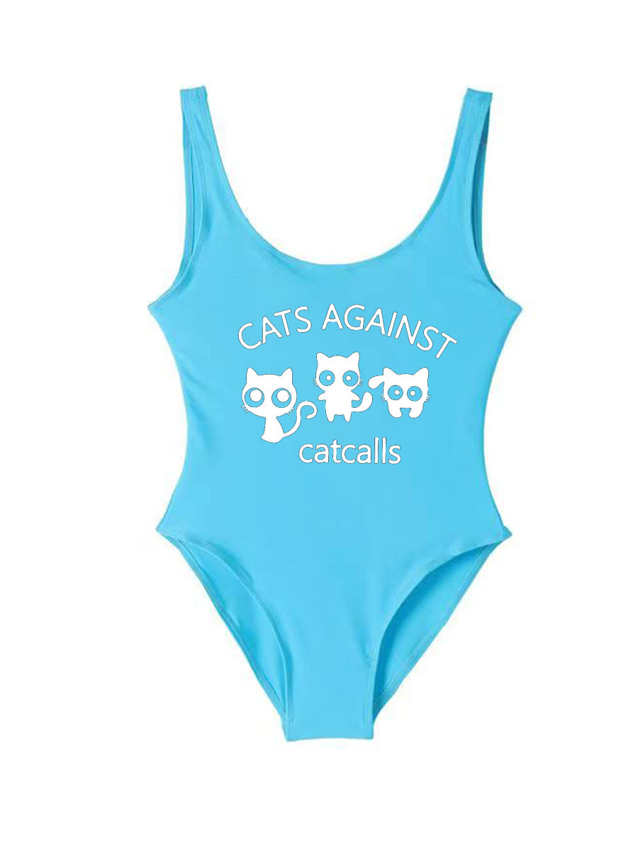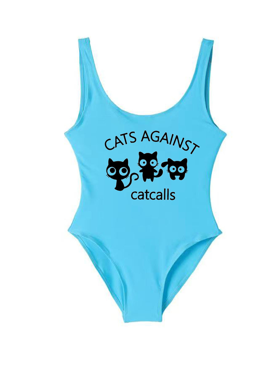 아마존 새로운 비키니 프린트 수영복 고양이 숙녀 헐렁한 보수적 인 원피스 수영복.스토어 가기