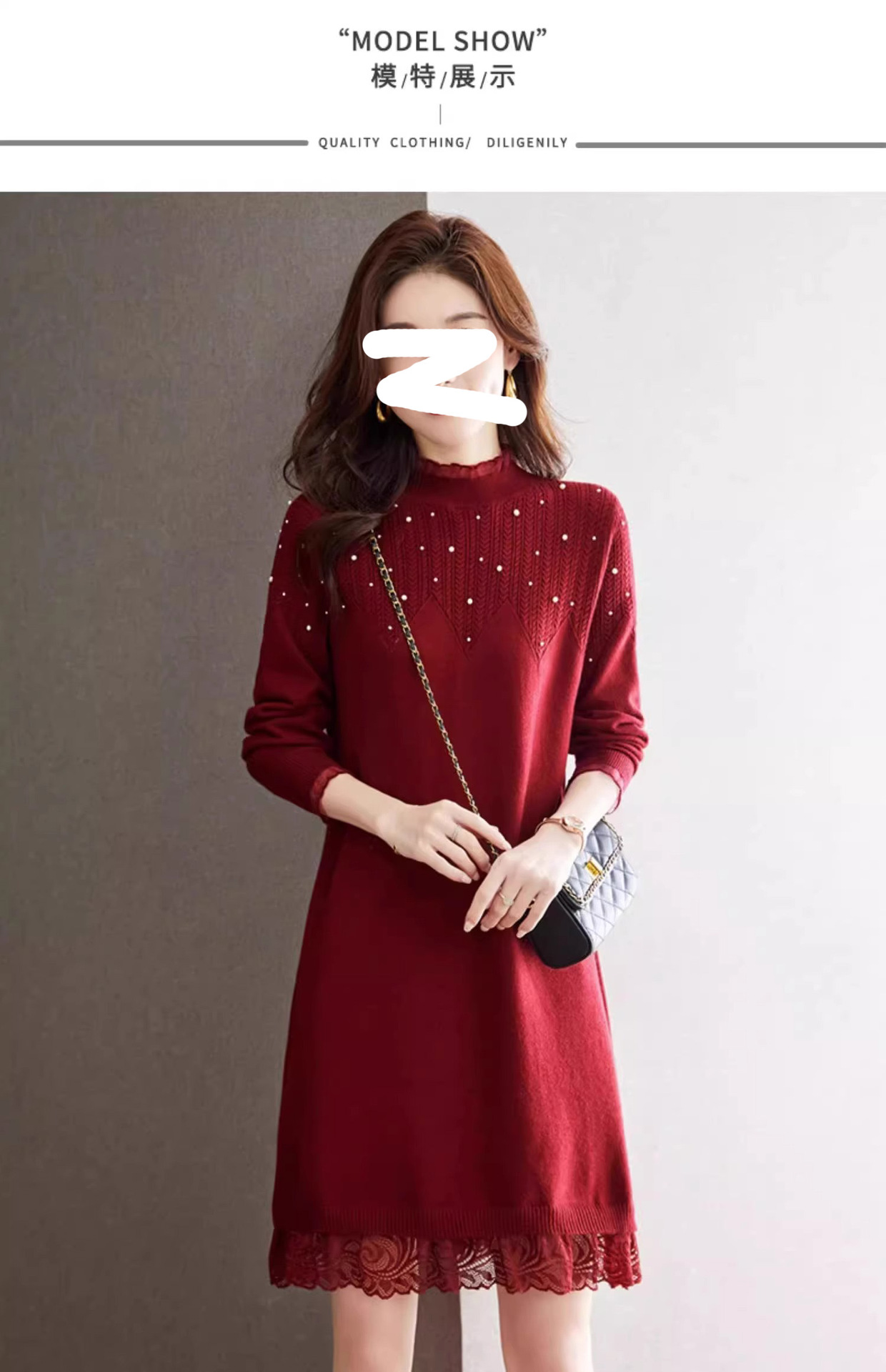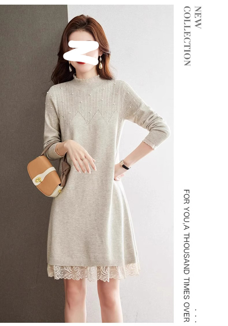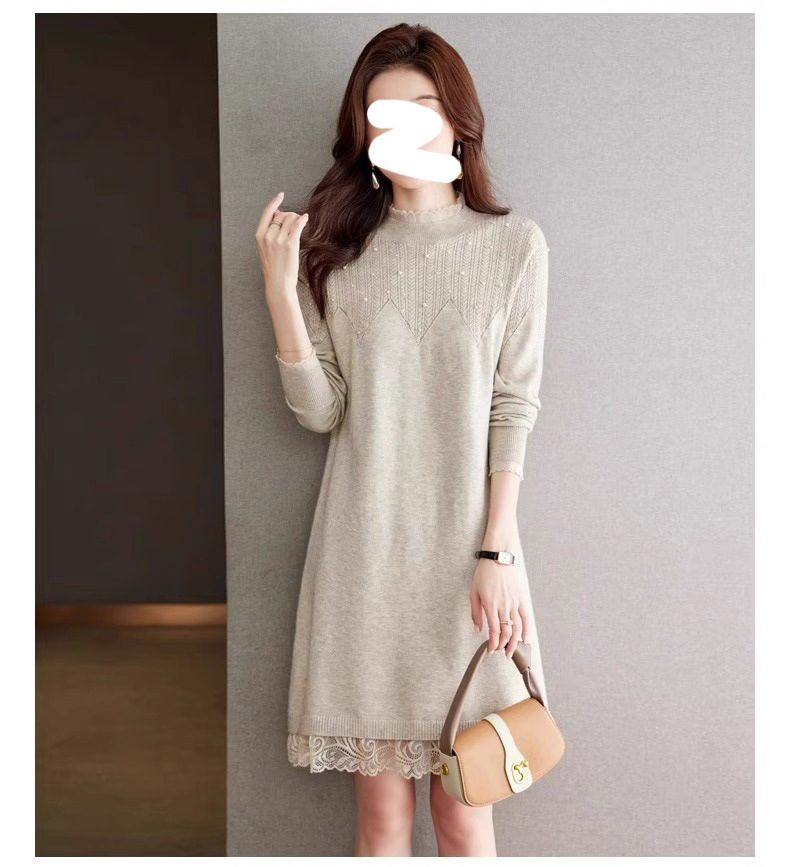 니트 원피스 2024 여성용 쁘띠 가을과 겨울 내베이스 셔츠를위한 새로운 스타일 레이스 하프 하이 넥 스웨터 원피스스토어 가기