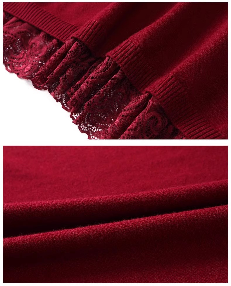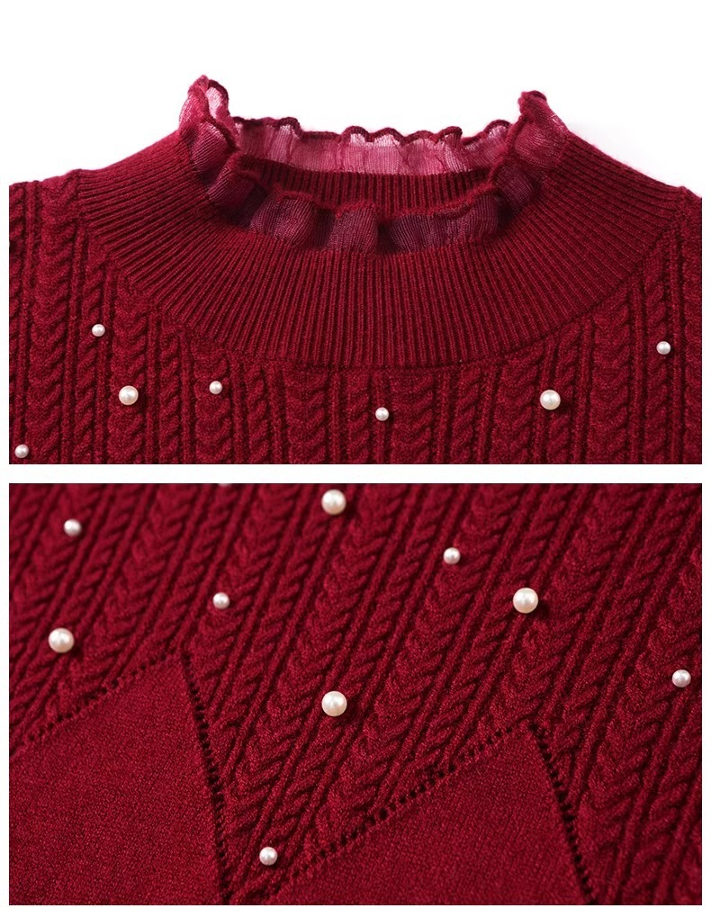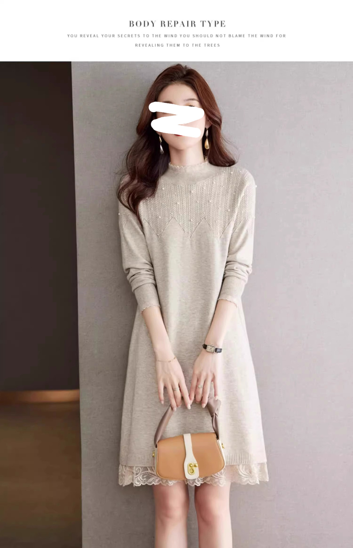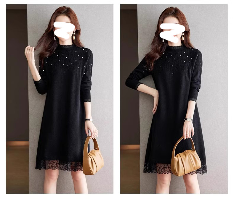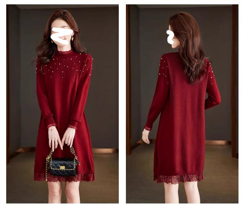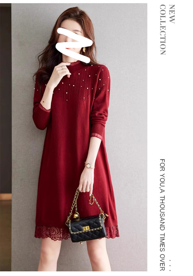 니트 원피스 2024 여성용 쁘띠 가을과 겨울 내베이스 셔츠를위한 새로운 스타일 레이스 하프 하이 넥 스웨터 원피스