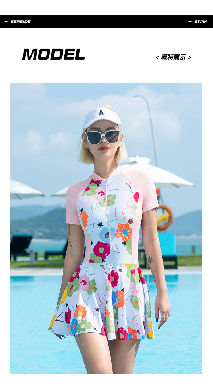 도매 꽃 원피스 수영복 여성 배꼽 커버 보수적 인 새로운 중국 스타일 슬림 소녀 2024 새로운 하이 엔드 느낌스토어 가기