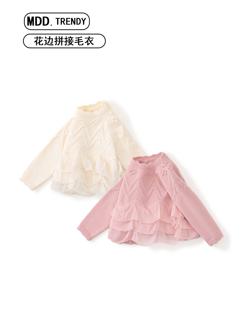 MDD 소녀 공주 스웨터 새해 가을 2024 새로운 어린이 스티칭 니트웨어 어린이 스웨터 스위트스토어 가기